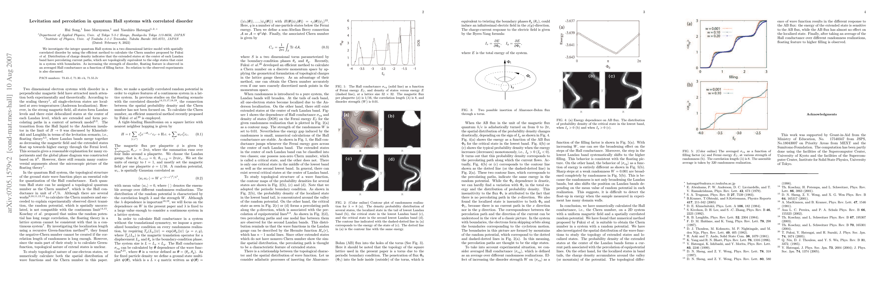 This paper explores the integer quantum Hall effect in two-dimensional lattices with correlated disorder, revealing percolating current paths through extended states. It observes a levitation phenomenon in the averaged Hall conductance with increasing disorder, akin to edge states, and discusses its experimental relevance.