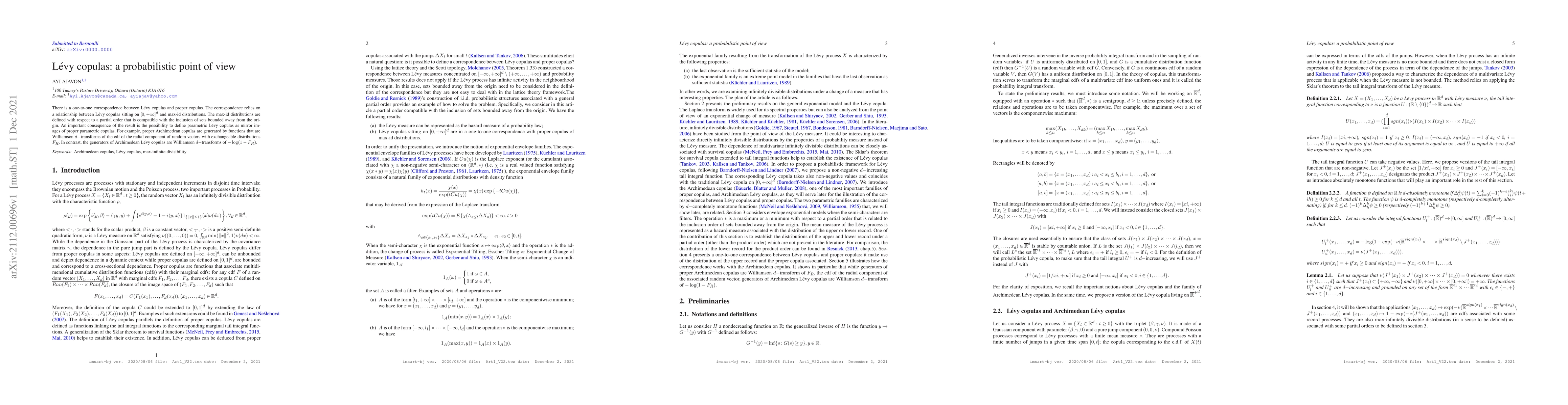 This paper explores the relationship between Lévy copulas and proper copulas, establishing a one-to-one correspondence based on max-id distributions and a compatible partial order. It introduces parametric Lévy copulas as mirror images of proper copulas, exemplified by the transformation of Archimedean copulas.