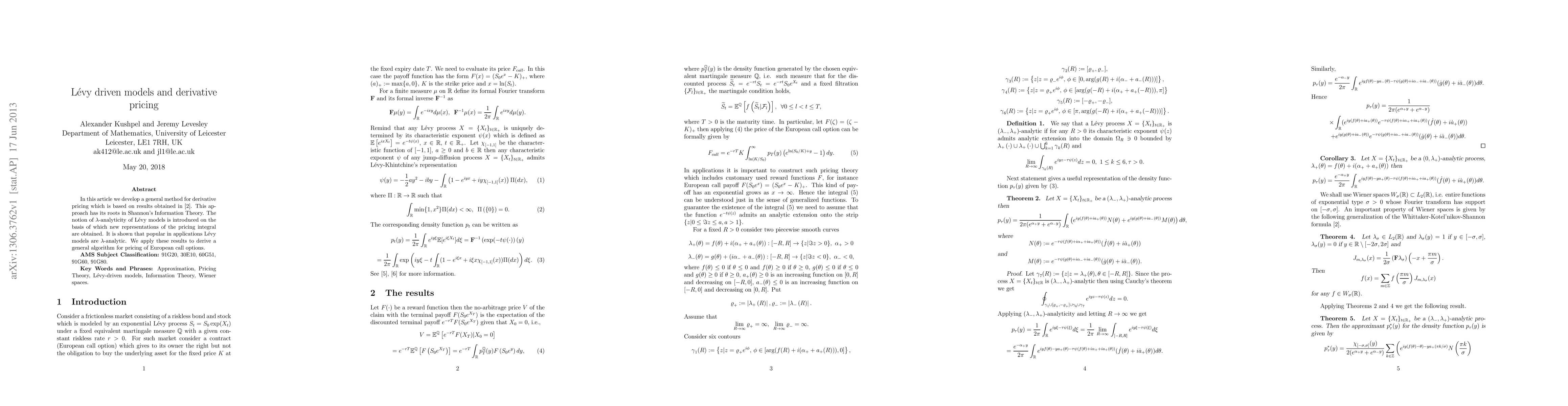 This paper develops a derivative pricing method rooted in Shannon's Information Theory, introducing $\lambda$-analyticity for Lévy models to derive new pricing integral representations. It concludes with a general algorithm for pricing European call options based on these findings.