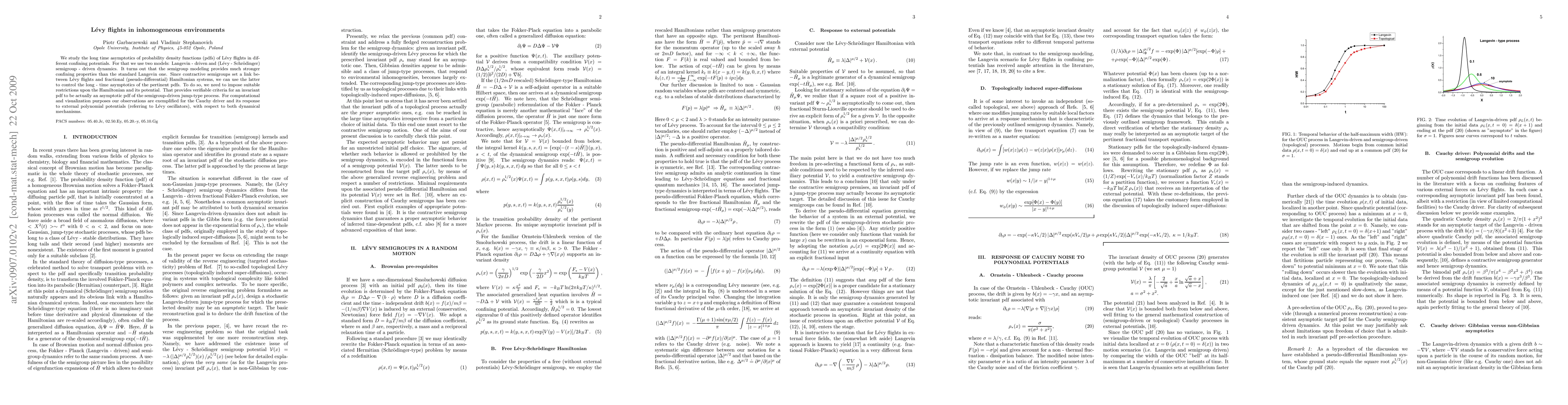 The research employs Lévy-Schrödinger semigroup modeling to link Lévy flights with pseudo-differential Hamiltonian systems, analyzing the long-time asymptotics of probability density functions (pdfs) in different confining potentials using Langevin and Lévy-Schrödinger semigroup dynamics.