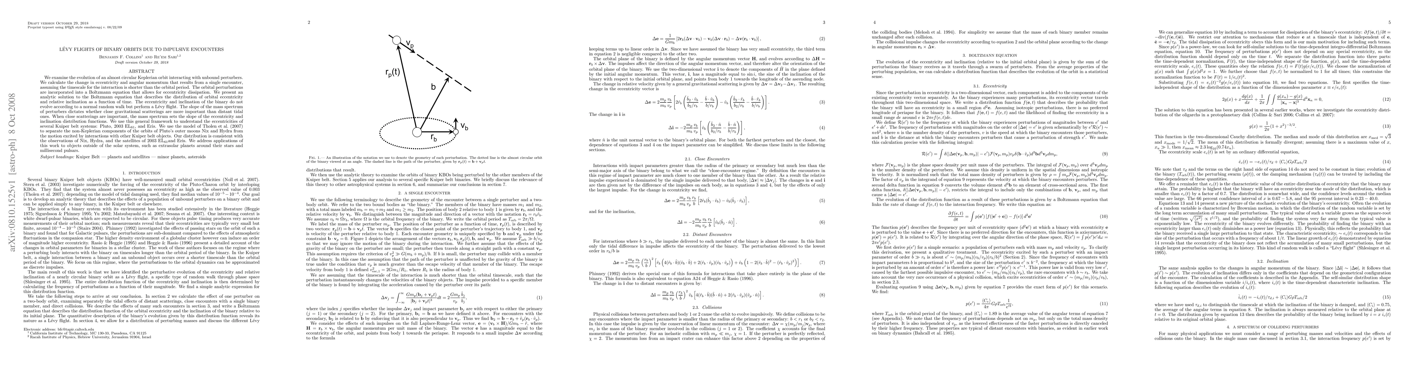 We examine the evolution of an almost circular Keplerian orbit interacting with unbound perturbers. We calculate the change in eccentricity and angular momentum that results from a single encounter, assuming the timescale for the interaction is shorter than the orbital period. The orbital perturbations are incorporated into a Boltzmann equation that allows for eccentricity dissipation. We present an analytic solution to the Boltzmann equation that describes the distribution of orbital eccentricity and relative inclination as a function of time. The eccentricity and inclination of the binary do not evolve according to a normal random walk but perform a Levy flight. The slope of the mass spectrum of perturbers dictates whether close gravitational scatterings are more important than distant tidal ones. When close scatterings are important, the mass spectrum sets the slope of the eccentricity and inclination distribution functions. We use this general framework to understand the eccentricities of several Kuiper belt systems: Pluto, 2003 EL 61, and Eris. We use the model of Tholen et al (2007) to separate the non-Keplerian components of the orbits of Pluto's outer moons Nix and Hydra from the motion excited by interactions with other Kuiper belt objects. Our distribution is consistent with the observations of Nix, Hydra, and the satellites of 2003 EL 61 and Eris. We address applications of this work to objects outside of the solar system, such as extrasolar planets around their stars and millisecond pulsars.