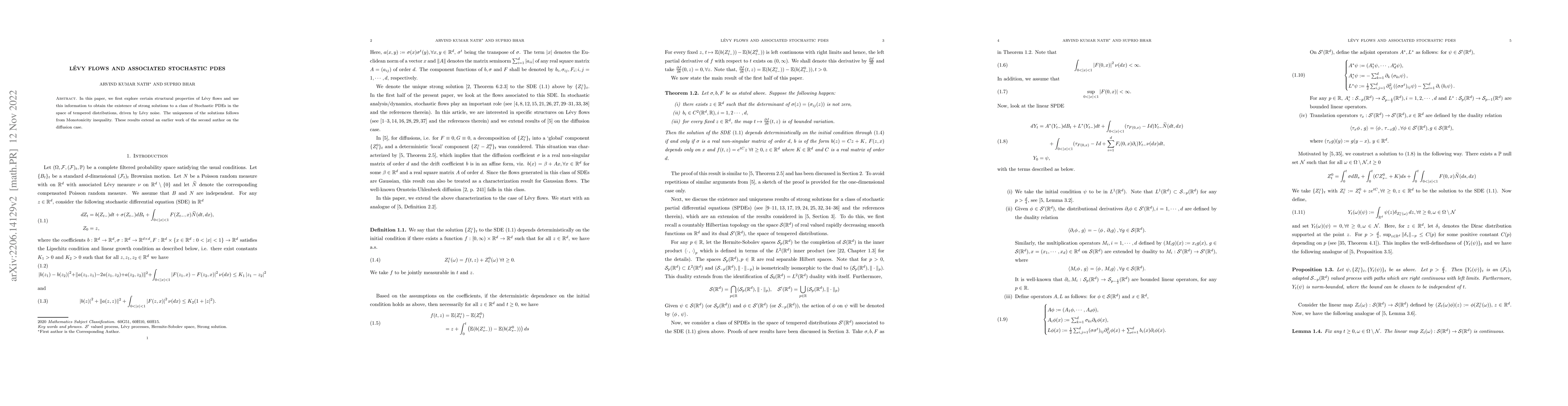 This paper investigates the structural properties of Lévy flows and leverages this understanding to establish the existence of strong solutions to a class of stochastic partial differential equations driven by Lévy noise within the space of tempered distributions. The uniqueness of these solutions is demonstrated through a Monotonicity inequality, extending previous results for the diffusion case.