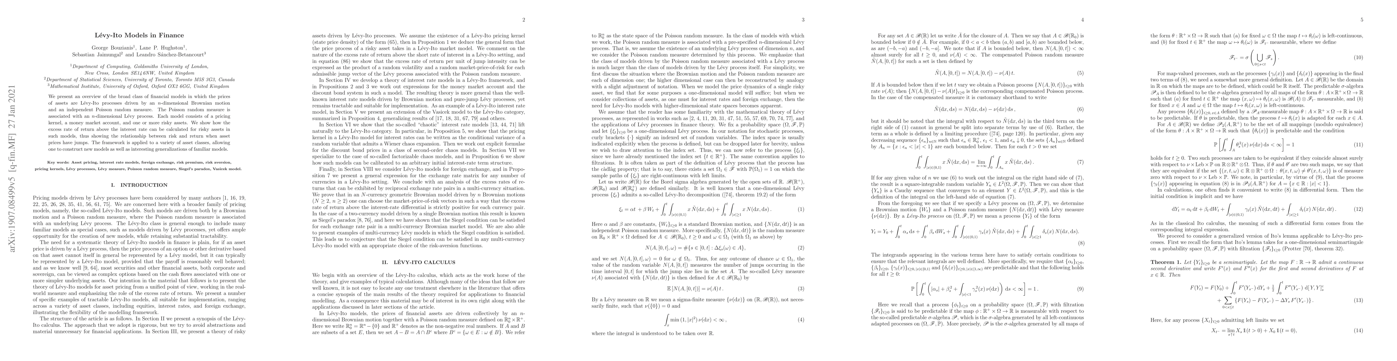 This research paper introduces Lévy-Ito models in finance, which describe asset prices with jumps using Brownian motion and Poisson random measures. It shows how to calculate the excess rate of return for risky assets, revealing a relationship between risk and return with jumps.