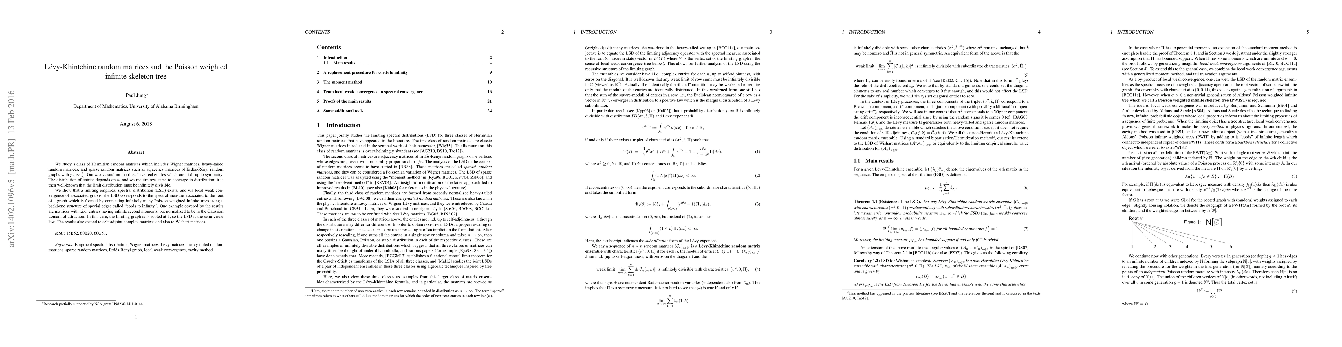 We study a class of Hermitian random matrices which includes and generalizes Wigner matrices, heavy-tailed random matrices, and sparse random matrices such as the adjacency matrices of Erdos-Renyi random graphs with p ~ 1/N. Our NxN random matrices have real entries which are i.i.d. up to symmetry. The distributions may depend on N, however, the sums of rows must converge in distribution; it is then well-known that the limiting distributions are infinitely divisible. We show that a limiting empirical spectral distribution (LSD) exists, and via local weak convergence of associated graphs, the LSD corresponds to the spectral measure at the root of a Poisson weighted infinite skeleton tree. This graph is formed by connecting infinitely many Poisson weighted infinite trees using a backbone structure. One example covered by the results are matrices with i.i.d. entries having infinite second moments, but normalized to be in the Gaussian domain of attraction. In this case, the limiting graph is just the positive integer line rooted at 1, and as expected, the LSD is Wigner's semi-circle law. The results also extend to self-adjoint complex matrices and also to Wishart matrices.