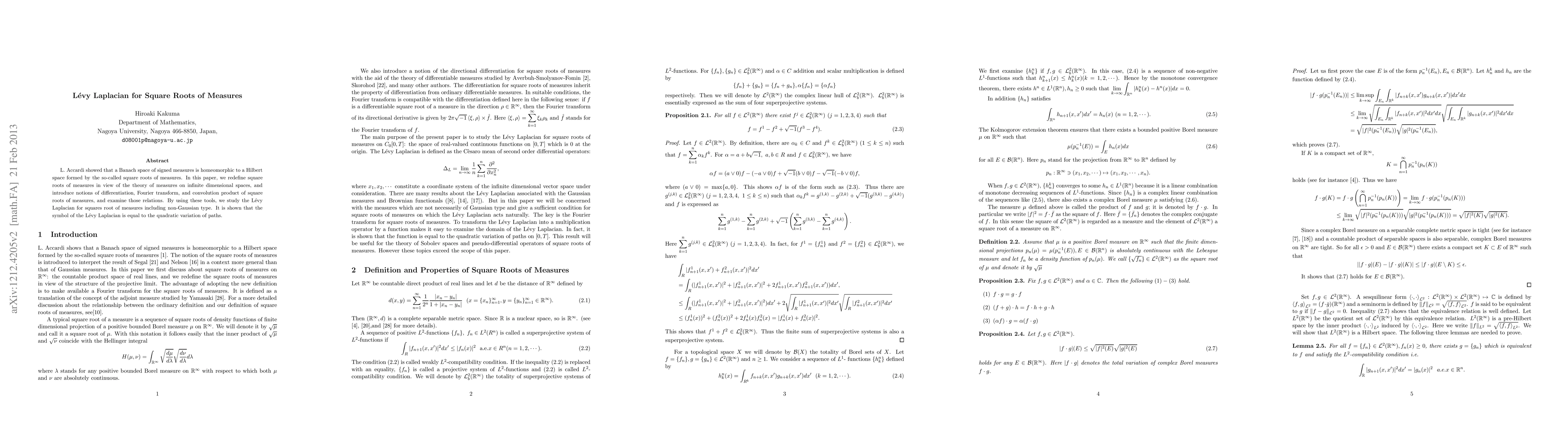 This research extends the theory of measures to infinite-dimensional spaces, providing a deeper understanding of root measures and their properties. It also offers new insights into the Lévy Laplacian, which has applications in stochastic processes and functional analysis.