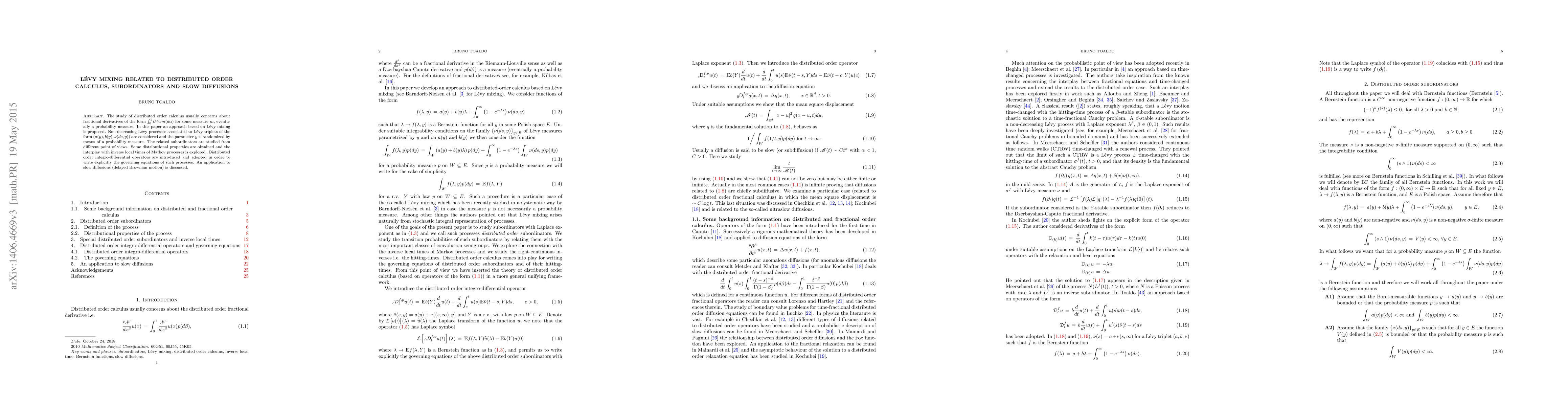 This paper proposes an approach based on Lévy mixing for studying distributed order calculus, introducing Lévy processes and subordinators to analyze fractional derivatives. It explores the distributional properties and applications to slow diffusions, linking distributed order integro-differential operators to Markov processes.