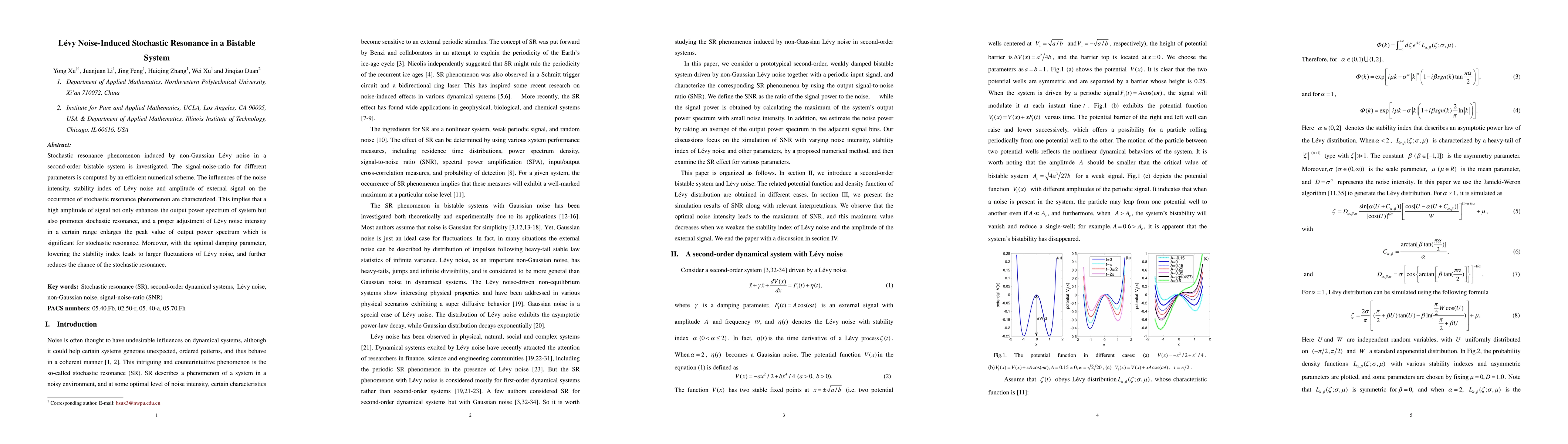 The research numerically investigates stochastic resonance (SR) induced by Lévy noise in a second-order bistable system using the signal-to-noise ratio (SNR) to quantify the SR phenomenon. A numerical scheme is employed to compute SNR as a function of noise intensity, stability index, and other system parameters.