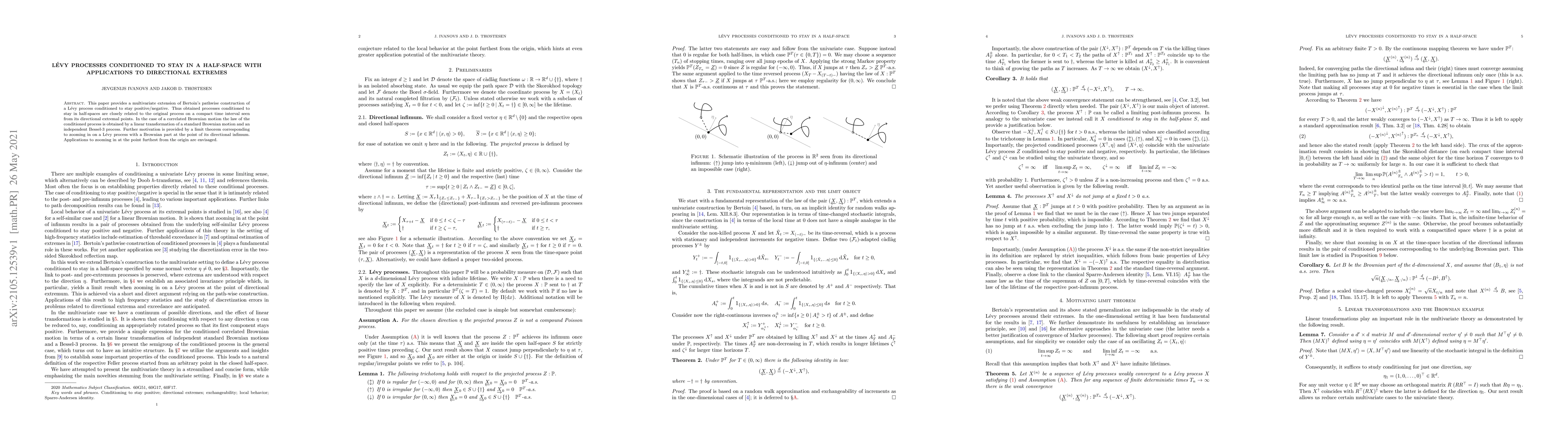 This paper extends Bertoin's construction of conditioned Lévy processes to multivariate settings, focusing on processes that remain in specified half-spaces. Applications include insights into directional extremes and the behavior of correlated Brownian motion near its infimum.