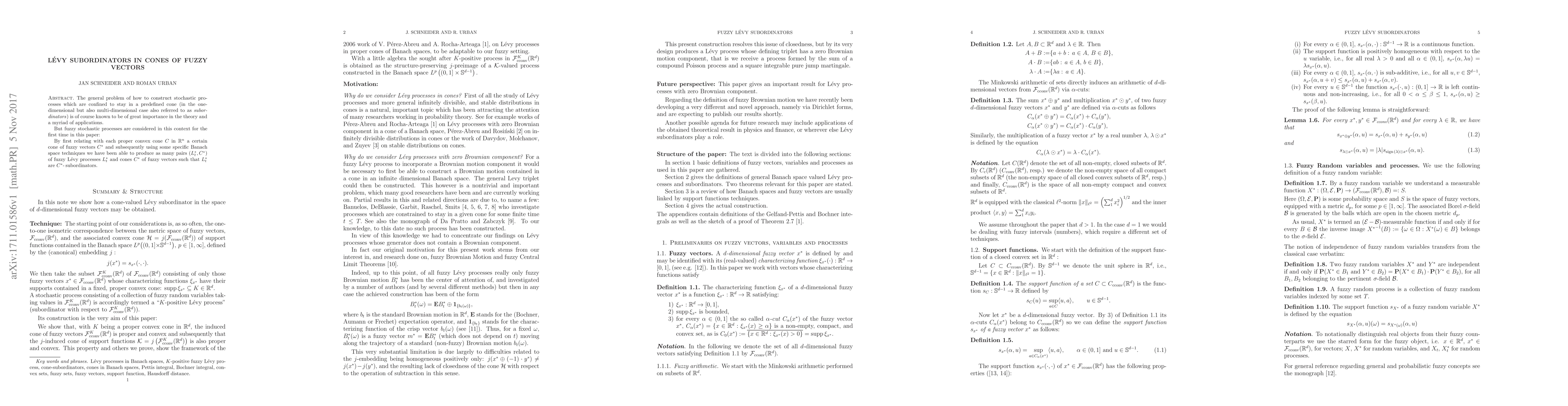 The general problem of how to construct stochastic processes which are confined to stay in a predefined cone (in the one-dimensional but also multi-dimensional case also referred to as \emph{subordinators}) is of course known to be of great importance in the theory and a myriad of applications.\par But fuzzy stochastic processes are considered in this context for the first time in this paper:\par By first relating with each proper convex cone $C$ in $\R^{n}$ a certain cone of fuzzy vectors $C^*$ and subsequently using some specific Banach space techniques we have been able to produce as many pairs $(L^*_t, C^*)$ of fuzzy \L processes $L^*_t$ and cones $C^*$ of fuzzy vectors such that $L^*_t$ are $C^*$-$\,$subordinators.