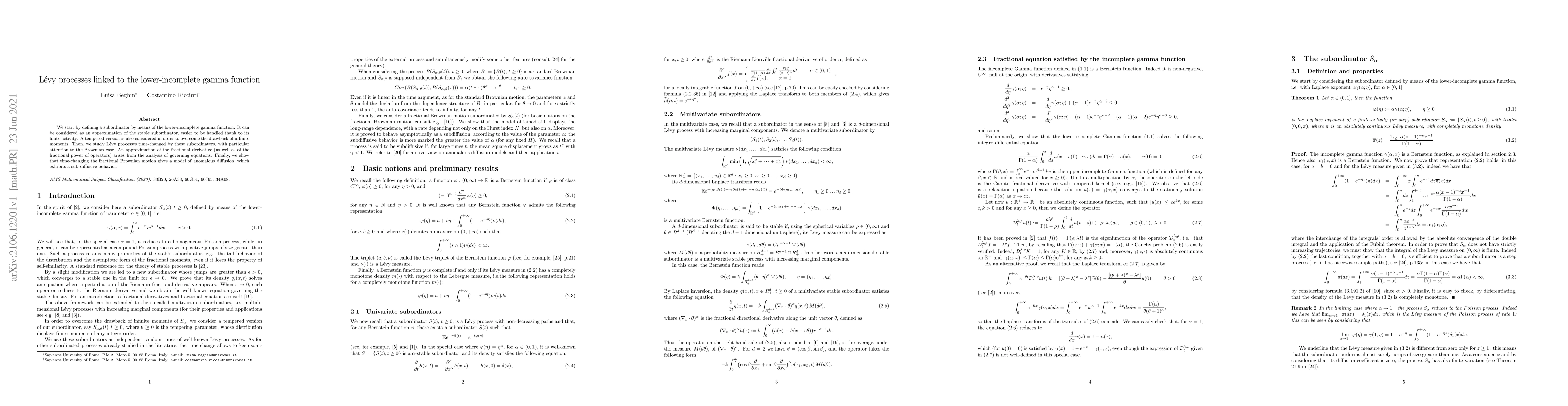 We start by defining a subordinator by means of the lower-incomplete gamma function. It can be considered as an approximation of the stable subordinator, easier to be handled thank to its finite activity. A tempered version is also considered in order to overcome the drawback of infinite moments. Then, we study L\'{e}vy processes time-changed by these subordinators, with particular attention to the Brownian case. An approximation of the fractional derivative (as well as of the fractional power of operators) arises from the analysis of governing equations. Finally, we show that time-changing the fractional Brownian motion gives a model of anomalous diffusion, which exhibits a sub-diffusive behavior.