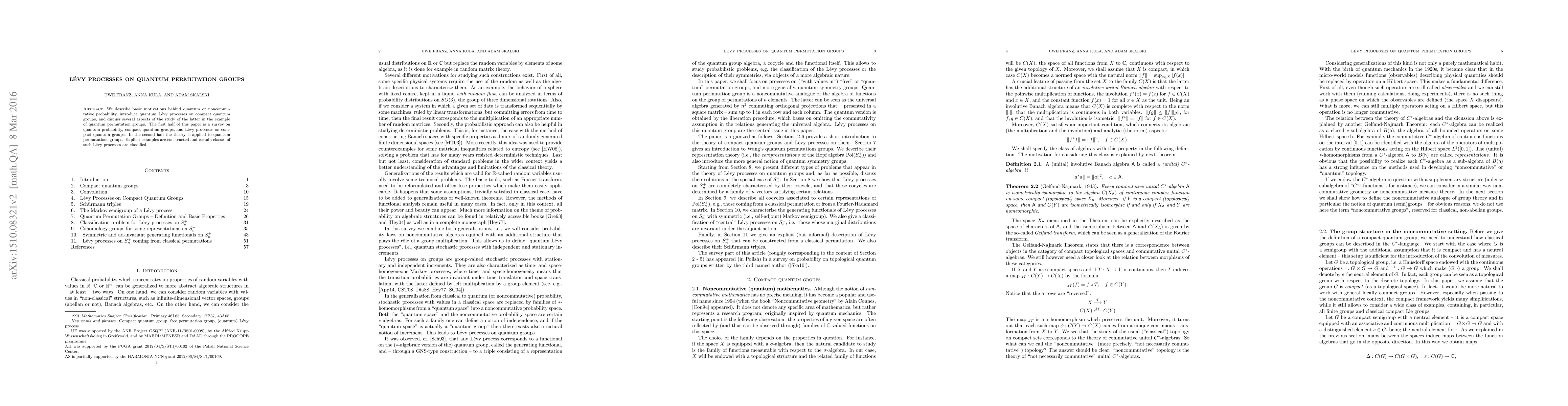 This paper surveys quantum probability, compact quantum groups, and Lévy processes, then applies these concepts to quantum permutation groups, constructing explicit examples and classifying certain classes of Lévy processes within this framework.