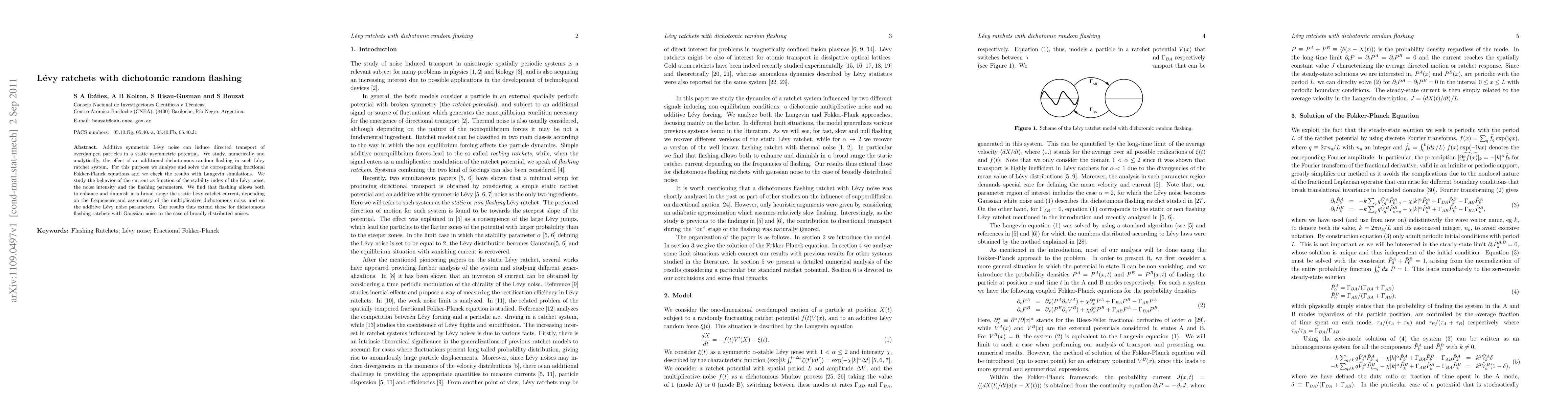 The paper presents a complete analysis of the two-variable fractional Fokker-Planck equation associated with Levy ratchets and dichotomic random flashing, converting the system into a numerically solvable linear matrix system.