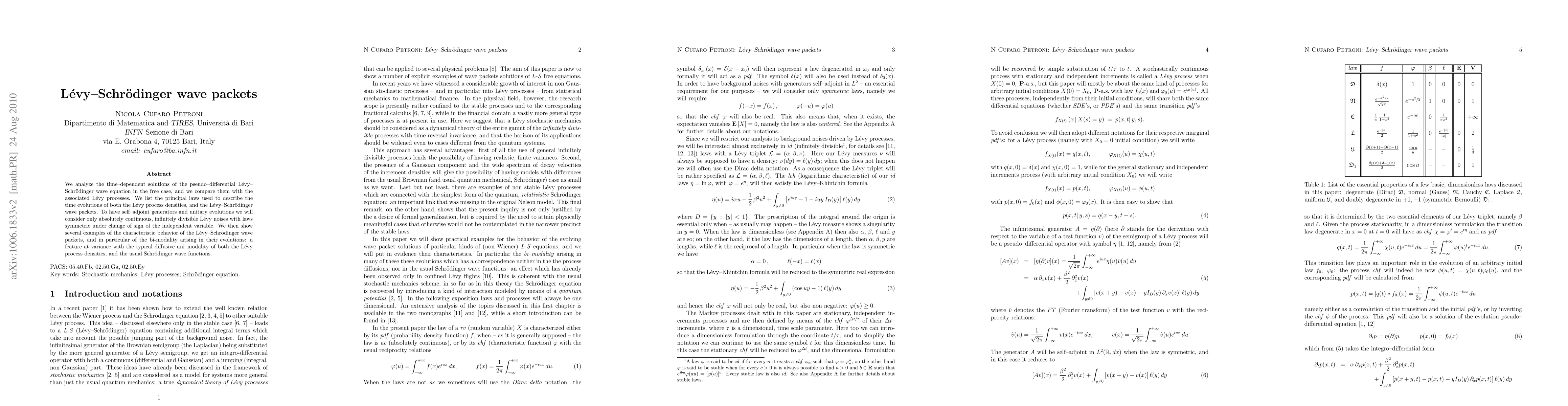 This paper examines the time-dependent solutions of the pseudo-differential Lévy-Schrödinger wave equation, comparing them with Lévy processes. It highlights the bi-modality in the evolution of Lévy-Schrödinger wave packets, contrasting with the uni-modality of Lévy process densities and typical Schrödinger wave functions.