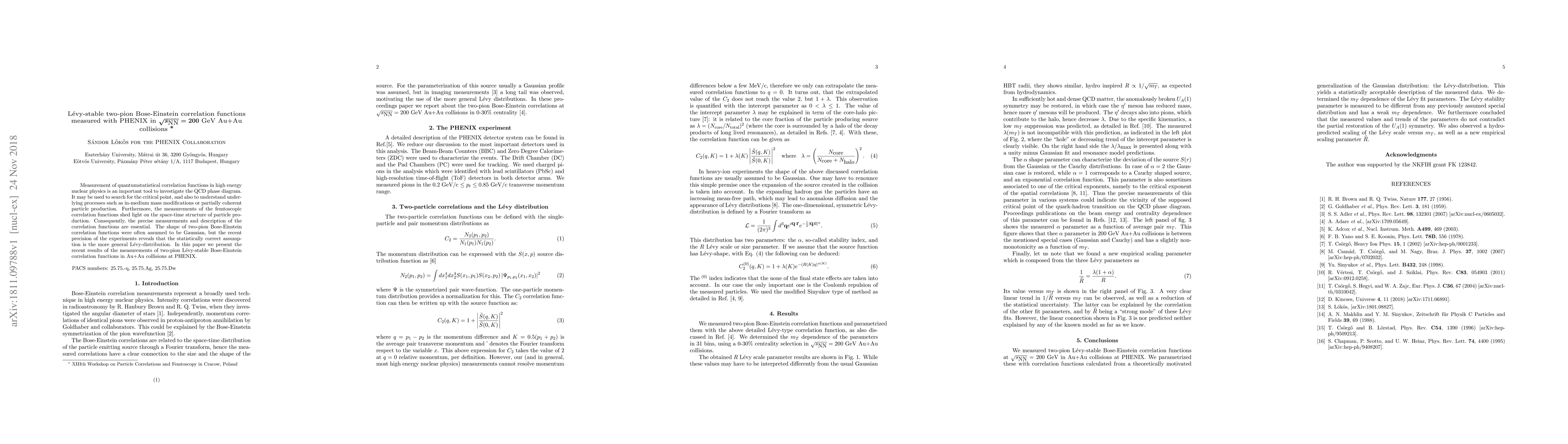 This paper reports on the measurement of two-pion L\'evy-stable Bose-Einstein correlation functions in Au+Au collisions at PHENIX, revealing a more general L\'evy-distribution instead of the traditionally Gaussian assumption, which provides insights into the QCD phase diagram and the space-time structure of particle production.