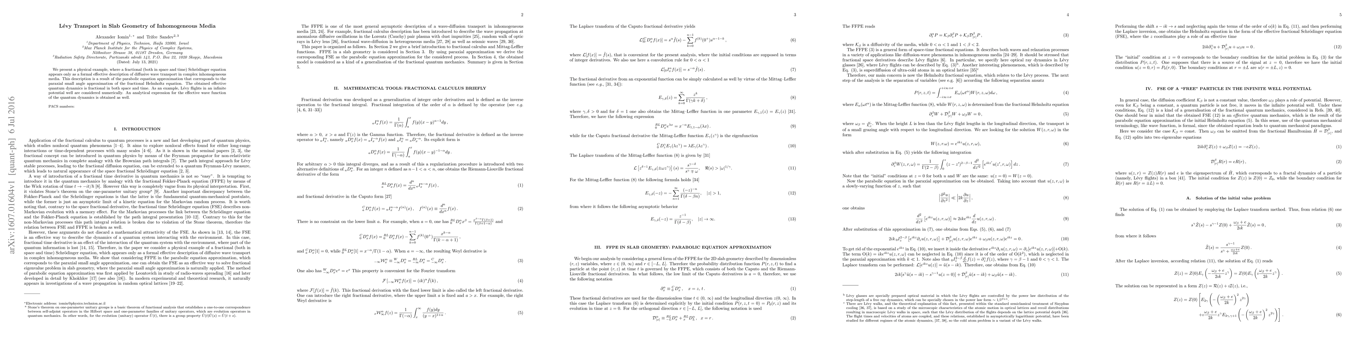 The paper introduces a method for deriving a fractional Schrödinger equation from a fractional Helmholtz equation, describing effective quantum dynamics in inhomogeneous media.