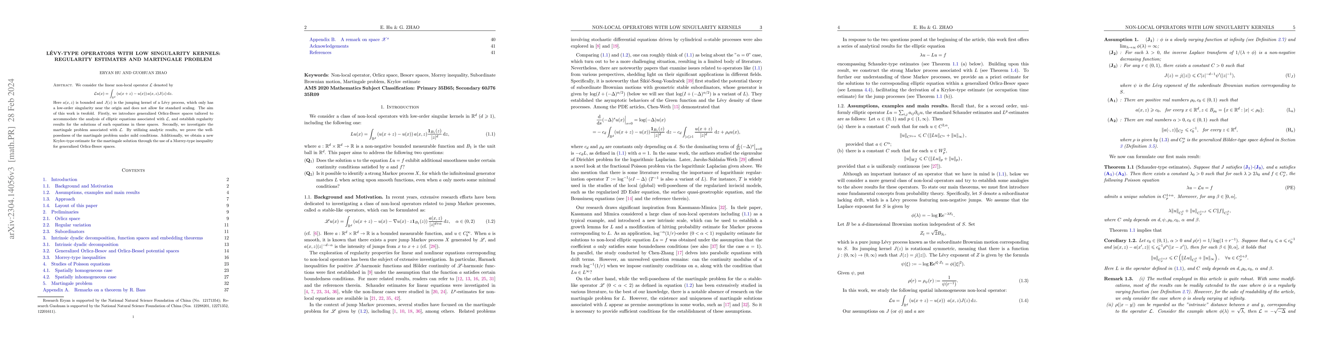 This paper explores the linear non-local operator $\mathcal{L}$ with a low-order singularity kernel, introducing generalized Orlicz-Besov spaces to analyze elliptic equations associated with $\mathcal{L}$ and proving regularity results. It also investigates the martingale problem for $\mathcal{L}$, establishing its well-posedness and deriving a new Krylov-type estimate using a Morrey-type inequality.