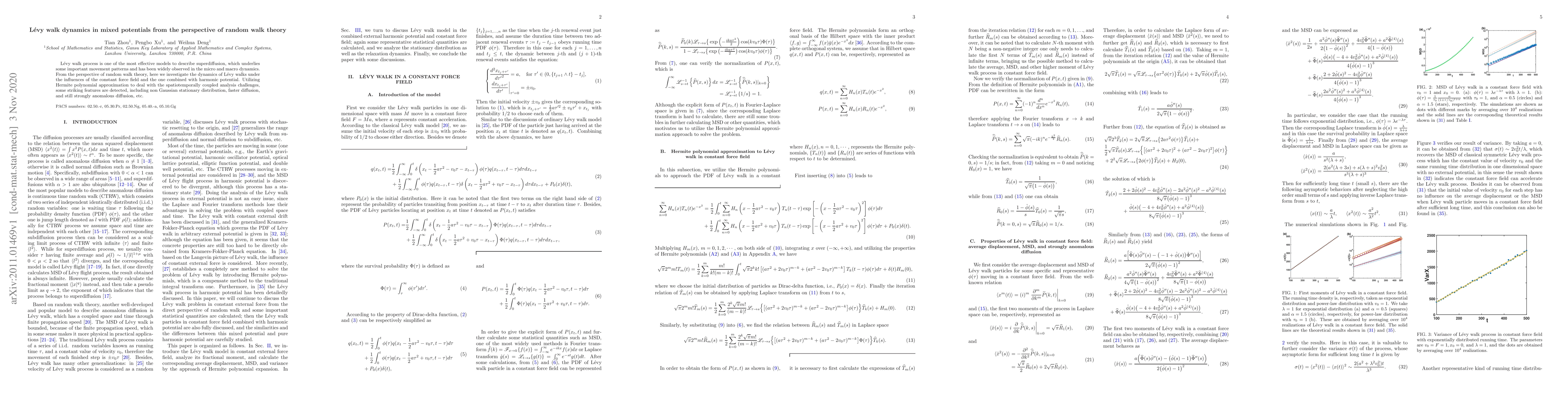 This paper investigates Lévy walk dynamics in mixed potentials using random walk theory, finding non-Gaussian stationary distributions and anomalous diffusion in the presence of constant force fields and harmonic potentials.