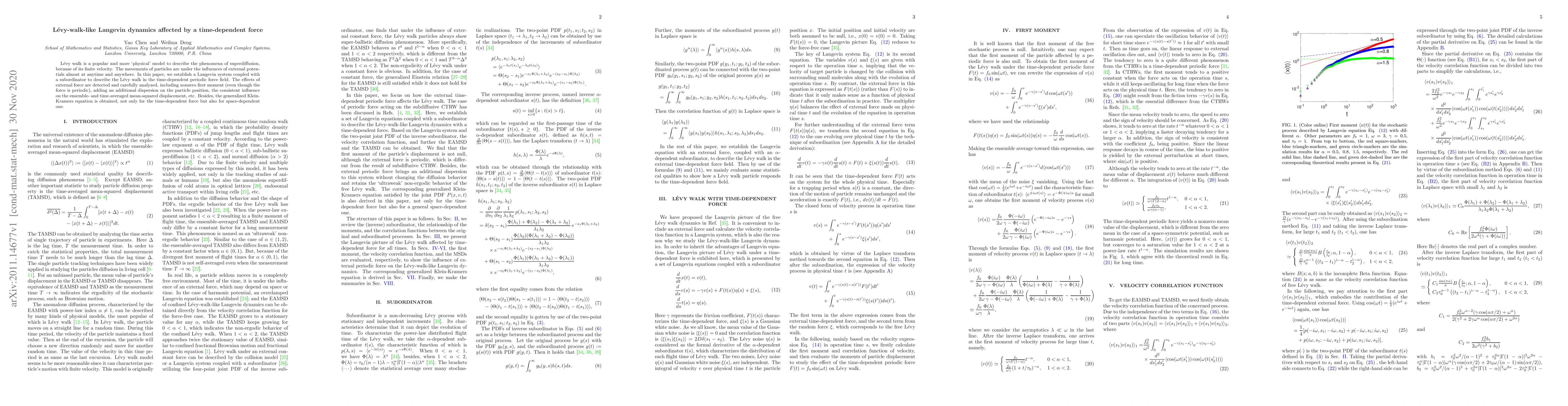 This paper develops a Langevin system with a subordinator to model Lévy walks under time-dependent periodic forces, analyzing their effects on particle movement, including additional dispersion and consistent influences on mean-squared displacement. The study also derives the generalized Klein-Kramers equation for both time- and space-dependent forces.