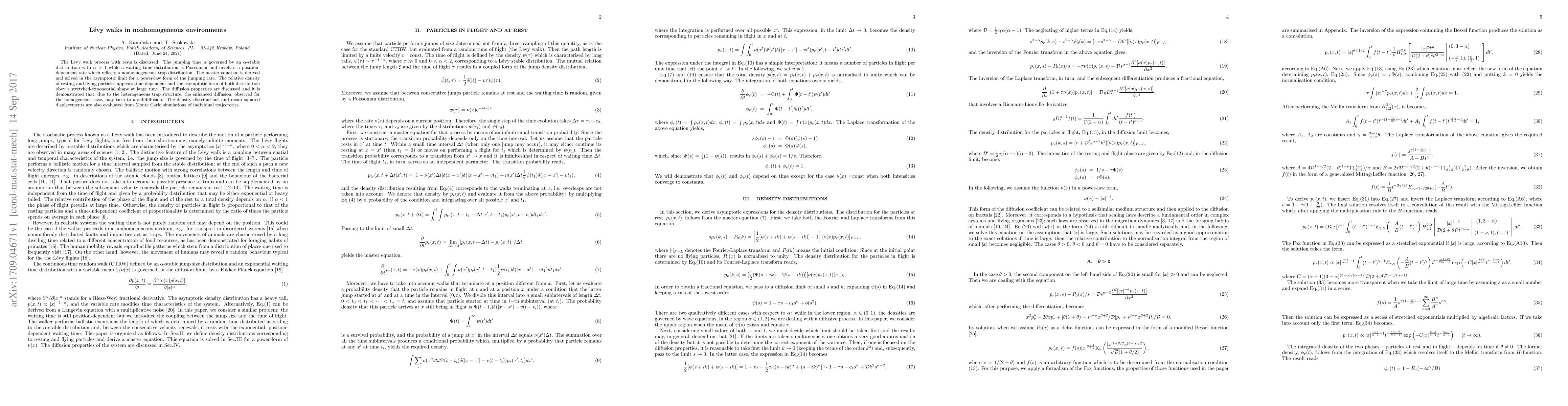 This research derives and solves a master equation for L'evy walks with rests in nonhomogeneous environments, finding time-dependent particle densities and stretched-exponential distributions at large times. It shows that heterogeneous trap structures can transform enhanced diffusion into subdiffusion, supported by Monte Carlo simulations of individual trajectories.