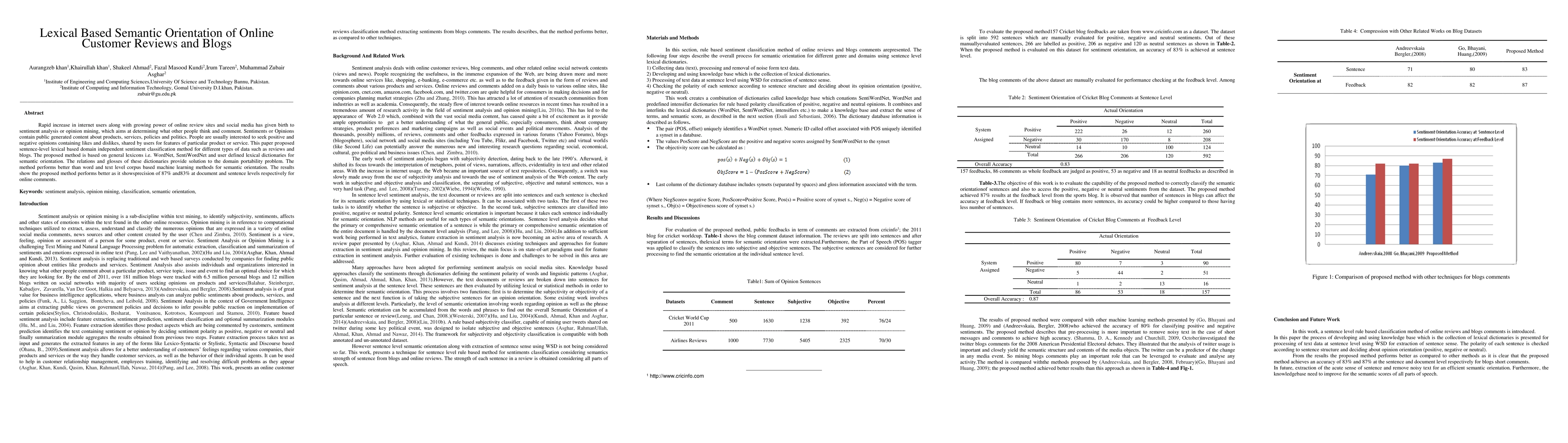 This paper proposes a domain-independent sentiment classification method using lexical-based dictionaries to analyze online customer reviews and blogs, achieving higher precision than traditional machine learning methods.