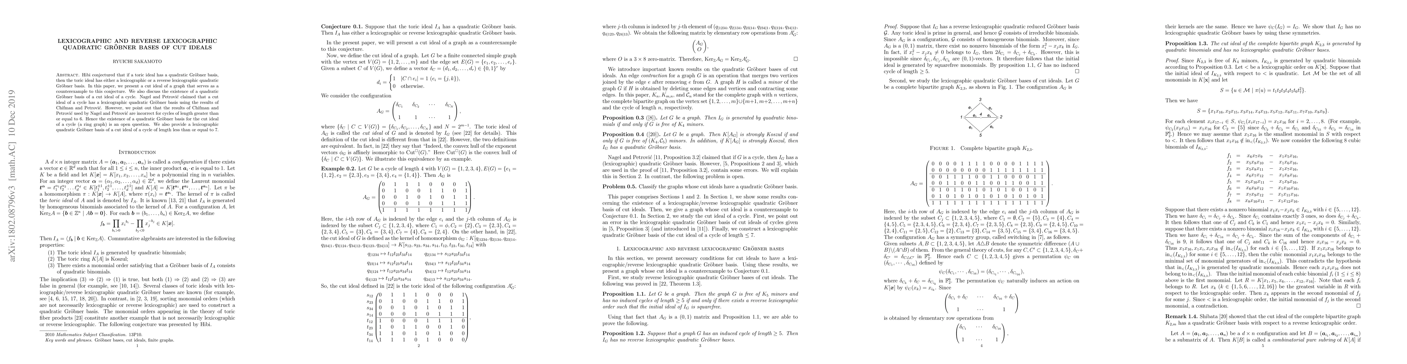 Hibi conjectured that if a toric ideal has a quadratic Gr\"obner basis, then the toric ideal has either a lexicographic or a reverse lexicographic quadratic Gr\"obner basis. In this paper, we present a cut ideal of a graph that serves as a counterexample to this conjecture. We also discuss the existence of a quadratic Gr\"obner basis of a cut ideal of a cycle. Nagel and Petrovi\'c claimed that a cut ideal of a cycle has a lexicographic quadratic Gr\"obner basis using the results of Chifman and Petrovi\'c. However, we point out that the results of Chifman and Petrovi\'c used by Nagel and Petrovi\'c are incorrect for cycles of length greater than or equal to 6. Hence the existence of a quadratic Gr\"obner basis for the cut ideal of a cycle (a ring graph) is an open question. We also provide a lexicographic quadratic Gr\"obner basis of a cut ideal of a cycle of length less than or equal to 7.