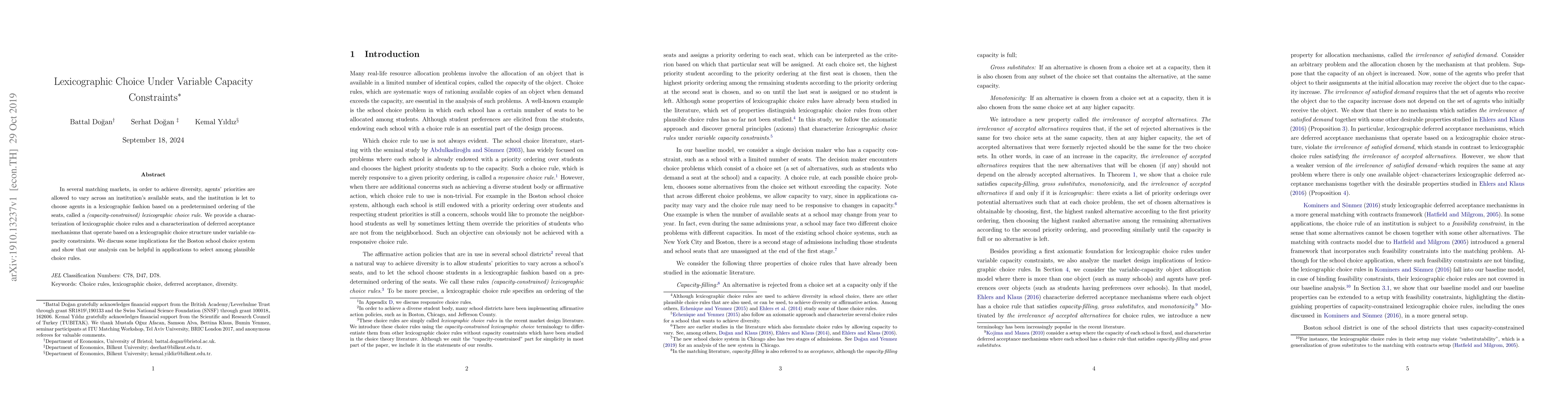 This paper characterizes lexicographic choice rules and mechanisms under variable capacity constraints, providing implications for school choice systems like Boston.