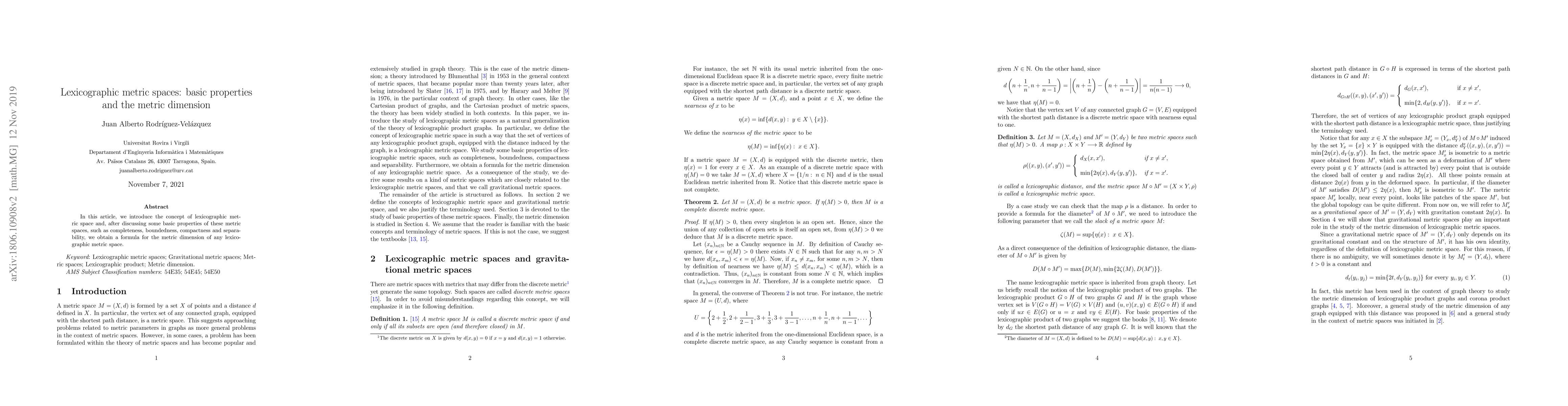 In this article, we introduce the concept of lexicographic metric space and, after discussing some basic properties of these metric spaces, such as completeness, boundedness, compactness and separability, we obtain a formula for the metric dimension of any lexicographic metric space.