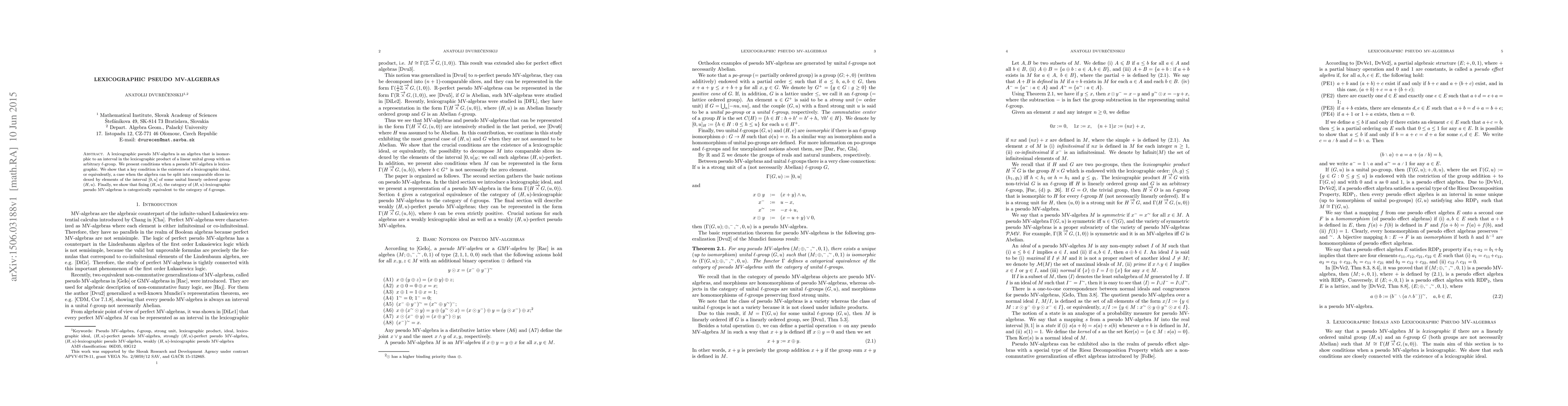 This paper explores lexicographic pseudo MV-algebras, identifying conditions for their existence and demonstrating that they are isomorphic to intervals in lexicographic products involving a linear unital group and an $\ell$-group. It concludes by showing that such algebras, when fixed to a unital linearly ordered group $(H,u)$, are categorically equivalent to $\ell$-groups.