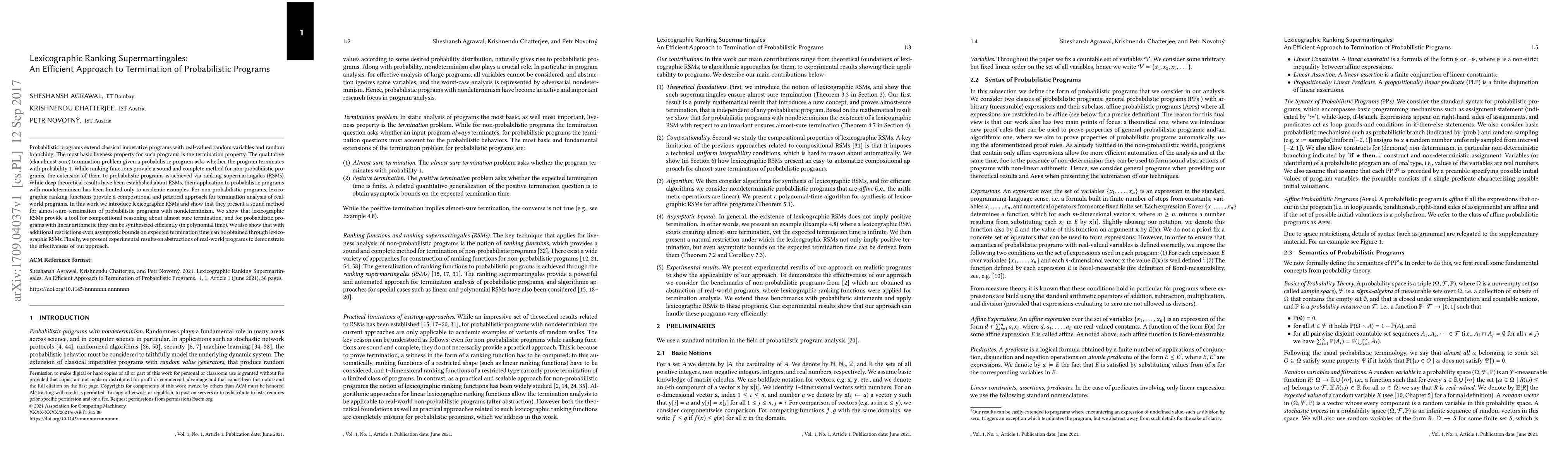 This paper introduces lexicographic ranking supermartingales (RSMs) as an efficient method for proving the almost-sure termination of probabilistic programs with nondeterminism. It demonstrates that lexicographic RSMs enable compositional reasoning and can be synthesized in polynomial time for programs with linear arithmetic, while also allowing for the estimation of expected termination time under certain conditions.