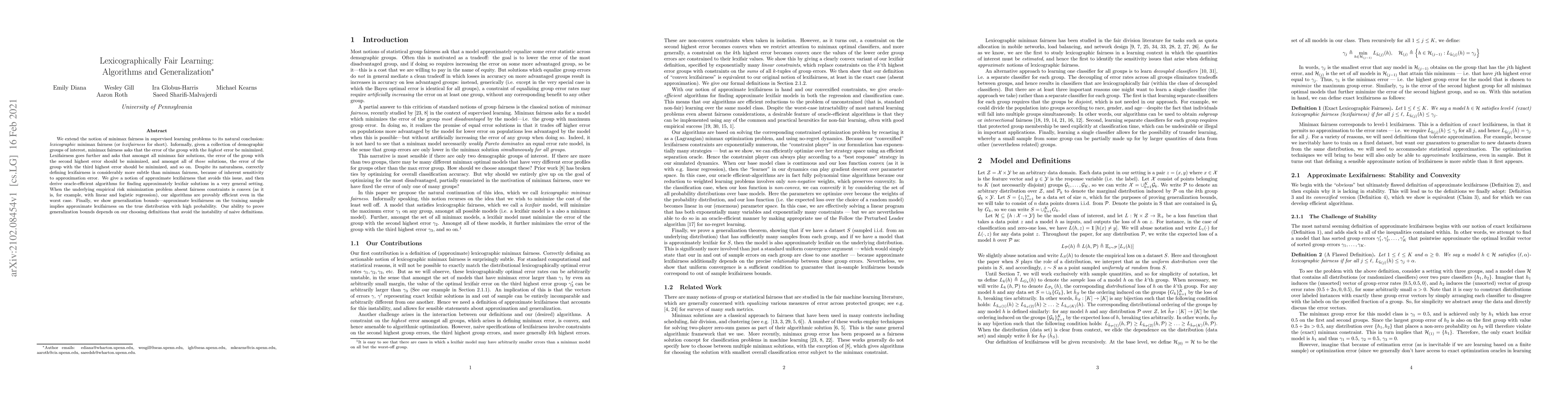 This paper introduces lexicographic minimax fairness (lexifairness) in supervised learning, extending minimax fairness to minimize the error of the group with the highest error sequentially. It proposes an approximate lexifairness definition and presents efficient algorithms for finding such solutions, proving generalization bounds under convex empirical risk minimization.