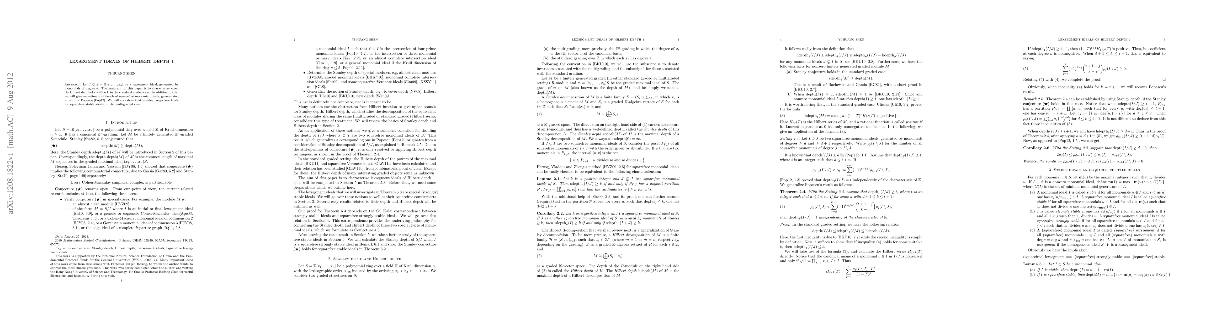 This paper characterizes conditions under which the Hilbert depth of a lexsegment ideal in a standard graded polynomial ring is 1, and generalizes a depth estimate for squarefree monomial ideals. Additionally, it demonstrates that Stanley's conjecture holds for squarefree stable ideals in the multigraded case.