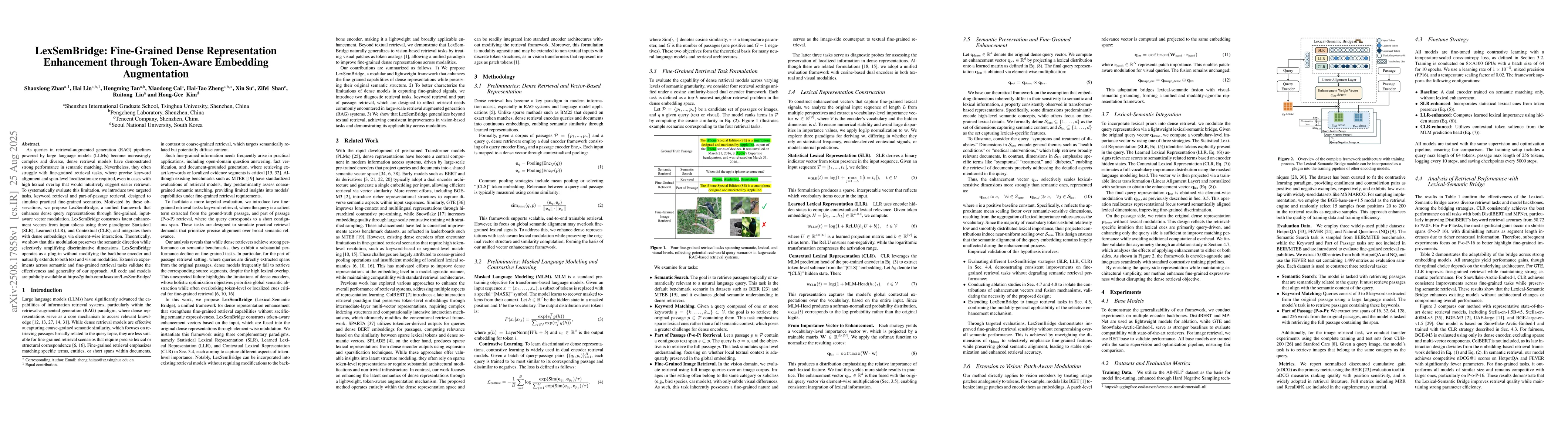 As queries in retrieval-augmented generation (RAG) pipelines powered by large language models (LLMs) become increasingly complex and diverse, dense retrieval models have demonstrated strong performance in semantic matching. Nevertheless, they often struggle with fine-grained retrieval tasks, where precise keyword alignment and span-level localization are required, even in cases with high lexical overlap that would intuitively suggest easier retrieval. To systematically evaluate this limitation, we introduce two targeted tasks, keyword retrieval and part-of-passage retrieval, designed to simulate practical fine-grained scenarios. Motivated by these observations, we propose LexSemBridge, a unified framework that enhances dense query representations through fine-grained, input-aware vector modulation. LexSemBridge constructs latent enhancement vectors from input tokens using three paradigms: Statistical (SLR), Learned (LLR), and Contextual (CLR), and integrates them with dense embeddings via element-wise interaction. Theoretically, we show that this modulation preserves the semantic direction while selectively amplifying discriminative dimensions. LexSemBridge operates as a plug-in without modifying the backbone encoder and naturally extends to both text and vision modalities. Extensive experiments across semantic and fine-grained retrieval tasks validate the effectiveness and generality of our approach. All code and models are publicly available at https://github.com/Jasaxion/LexSemBridge/