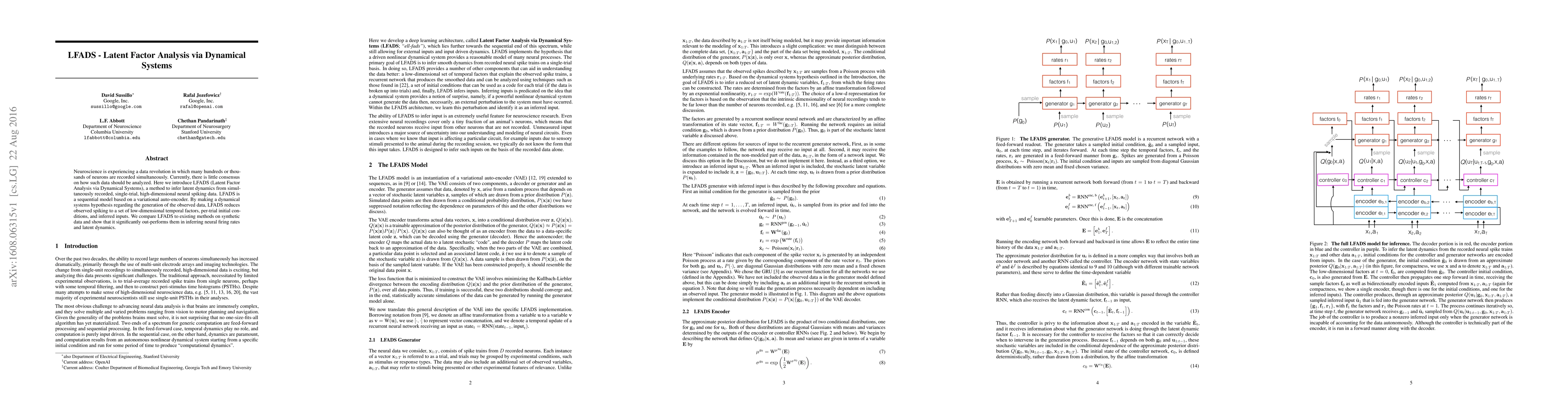 LFADS is a novel method for analyzing high-dimensional neural spiking data by inferring latent dynamics through a dynamical systems approach. It outperforms existing methods in inferring neural firing rates and latent dynamics, as demonstrated on synthetic data.