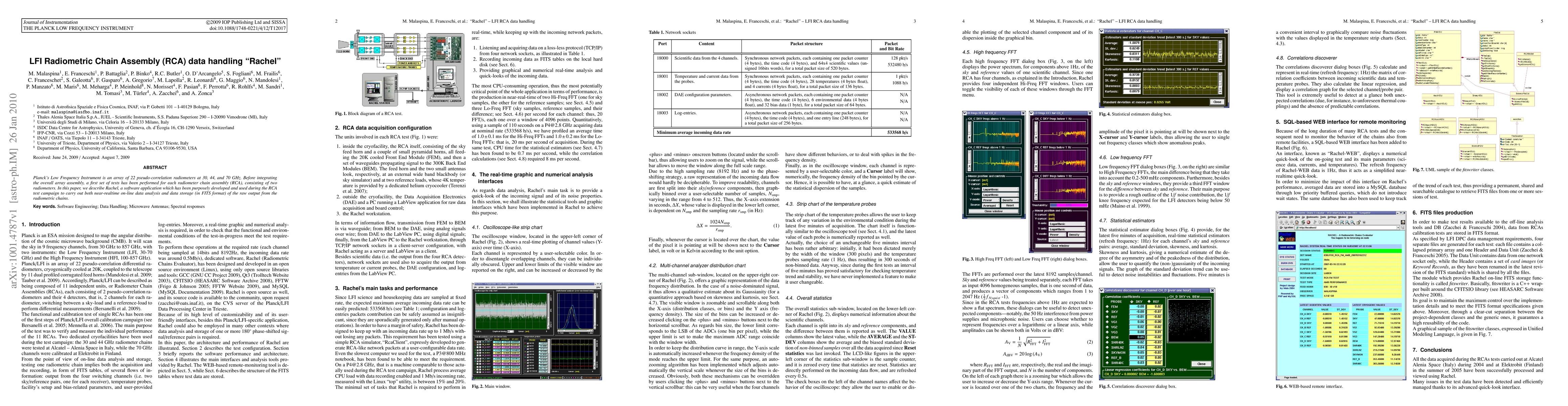 This paper details the development and use of "Rachel," a software application for handling and analyzing data from the radiometric chain assemblies (RCA) of Planck's Low Frequency Instrument during prelaunch tests. Rachel facilitates real-time data analysis and storage of raw output in FITS format.