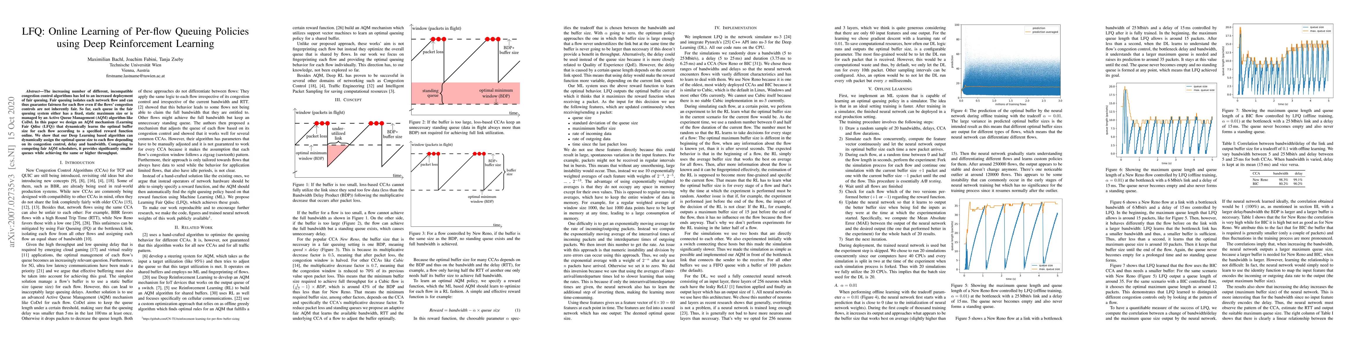 This paper proposes LFQ, an Active Queue Management mechanism using deep reinforcement learning to dynamically determine optimal buffer sizes for each network flow based on congestion control, delay, and bandwidth. Compared to traditional AQM methods, LFQ achieves smaller queues while maintaining or improving throughput.