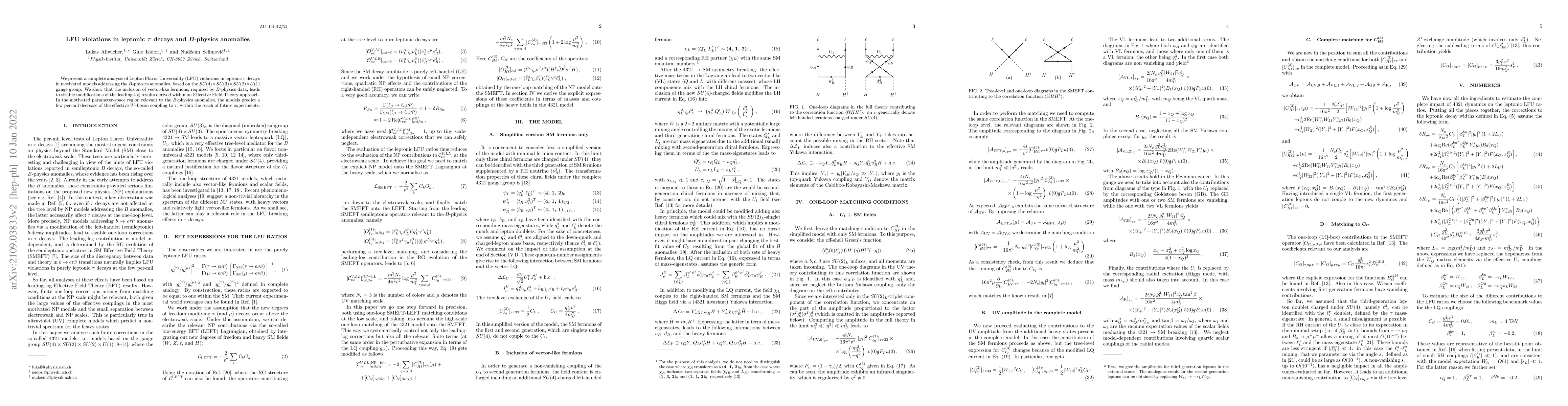 We present a complete analysis of Lepton Flavor Universality (LFU) violations in leptonic $\tau$ decays in motivated models addressing the $B$-physics anomalies, based on the $SU(4)\times SU(3)\times SU(2)\times U(1)$ gauge group. We show that the inclusion of vector-like fermions, required by $B$-physics data, leads to sizable modifications of the leading-log results derived within an Effective Field Theory approach. In the motivated parameter-space region relevant to the $B$-physics anomalies, the models predict a few per-mil decrease of the effective $W$-boson coupling to $\tau$, within the reach of future experiments.
