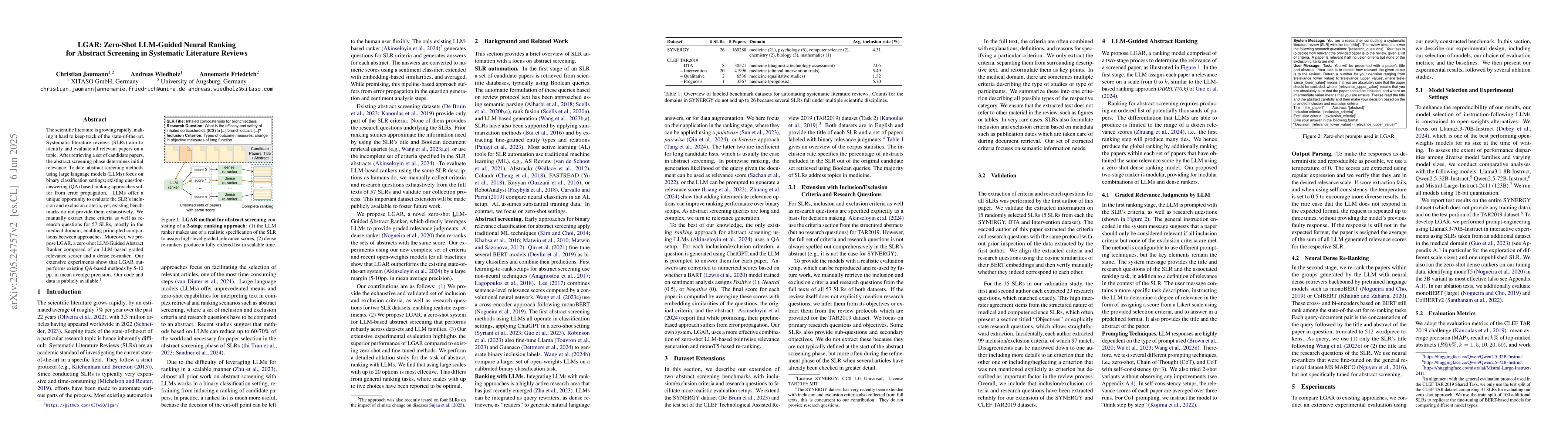 The paper introduces LGAR, a zero-shot LLM-Guided Abstract Ranker, composed of an LLM-based graded relevance scorer and a dense re-ranker, which outperforms existing QA-based methods.