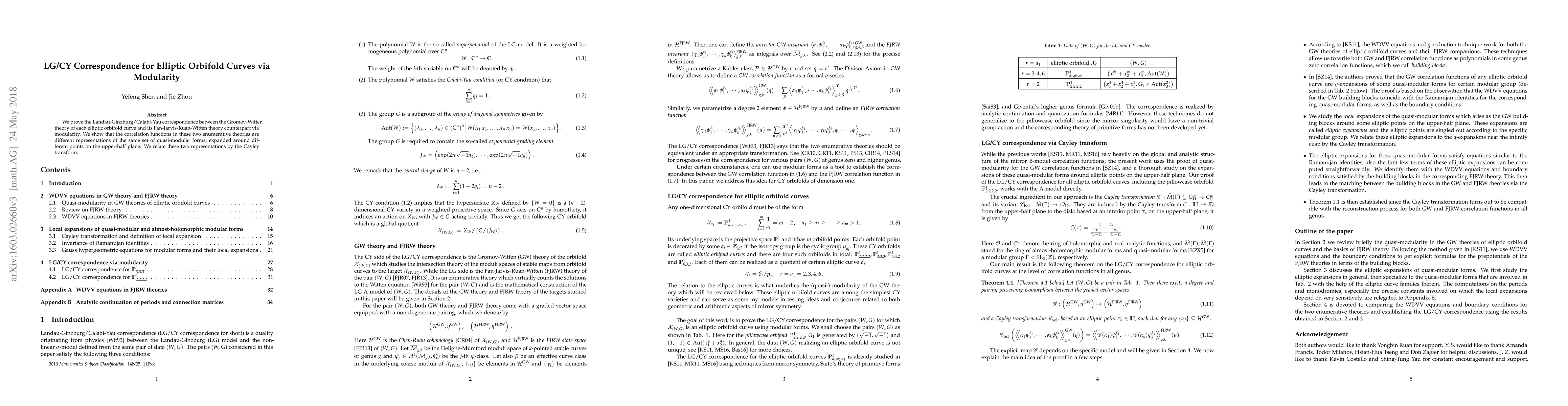 This paper establishes the Landau-Ginzburg/Calabi-Yau correspondence for elliptic orbifold curves using modularity, demonstrating that correlation functions in two enumerative theories are different representations of quasi-modular forms, linked via the Cayley transform.