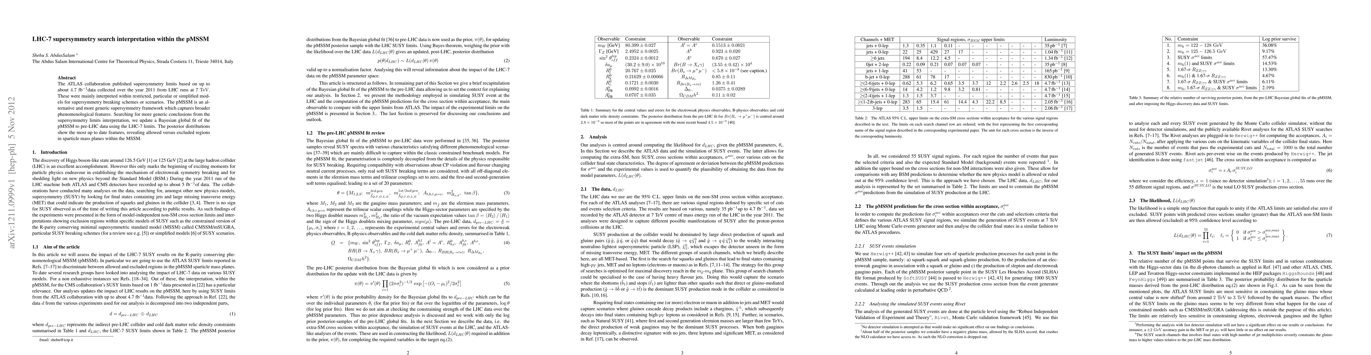The ATLAS collaboration analyzed LHC-7 data to set limits on supersymmetry, primarily interpreted within specific models. The pMSSM, a broader framework, was updated using these limits, revealing current allowed and excluded regions for sparticle masses within the MSSM.