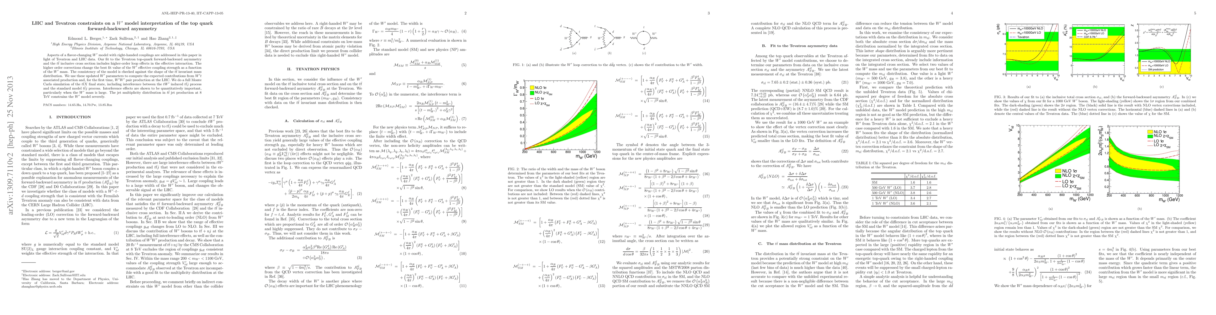 Aspects of a flavor-changing W' model with right-handed couplings are addressed in this paper in light of Tevatron and LHC data. Our fit to the Tevatron top-quark forward-backward asymmetry and the tt_bar inclusive cross section includes higher-order loop effects in the effective interaction. The higher order corrections change the best fit value of the W' effective coupling strength as a function of the W' mass. The consistency of the model is checked against the shape of the tt_bar invariant mass distribution. We use these updated W' parameters to compute the expected contributions from W't associated production and, for the first time, W'W' pair production at the LHC. We do a full Monte Carlo simulation of the tt_bar+X final state, including interference between the tW' induced tt_bar j process and the standard model tt_bar j process. Interference effects are shown to be quantitatively important, particularly when the W' mass is large. The jet multiplicity distribution in tt_bar-jet production at 8 TeV constrains the W' model severely.