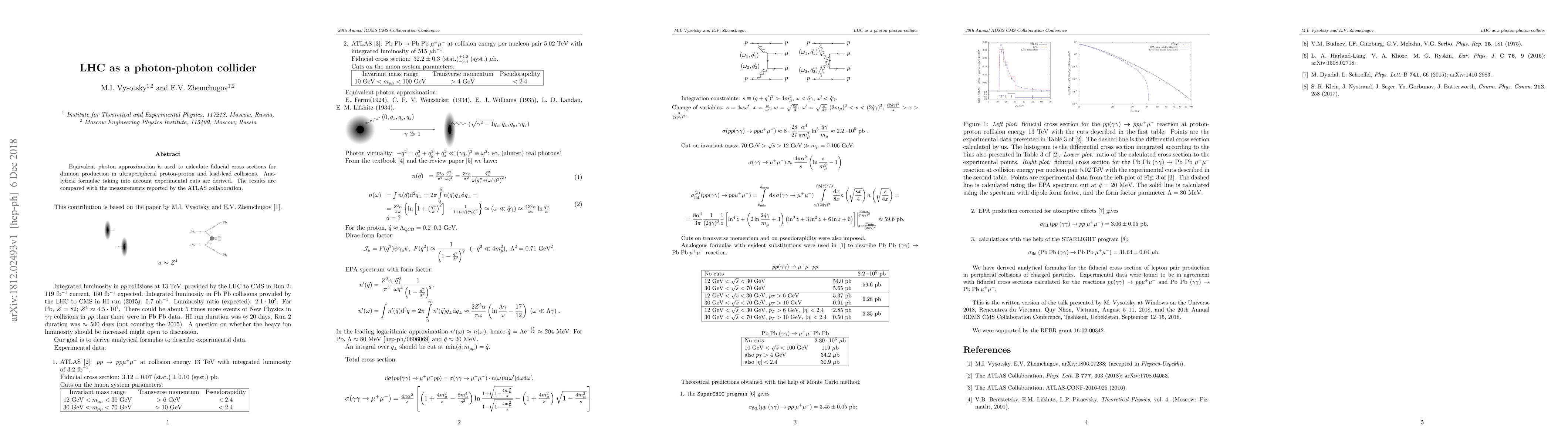 Equivalent photon approximation is used to calculate fiducial cross sections for dimuon production in ultraperipheral proton-proton and lead-lead collisions. Analytical formulae taking into account experimental cuts are derived. The results are compared with the measurements reported by the ATLAS collaboration.