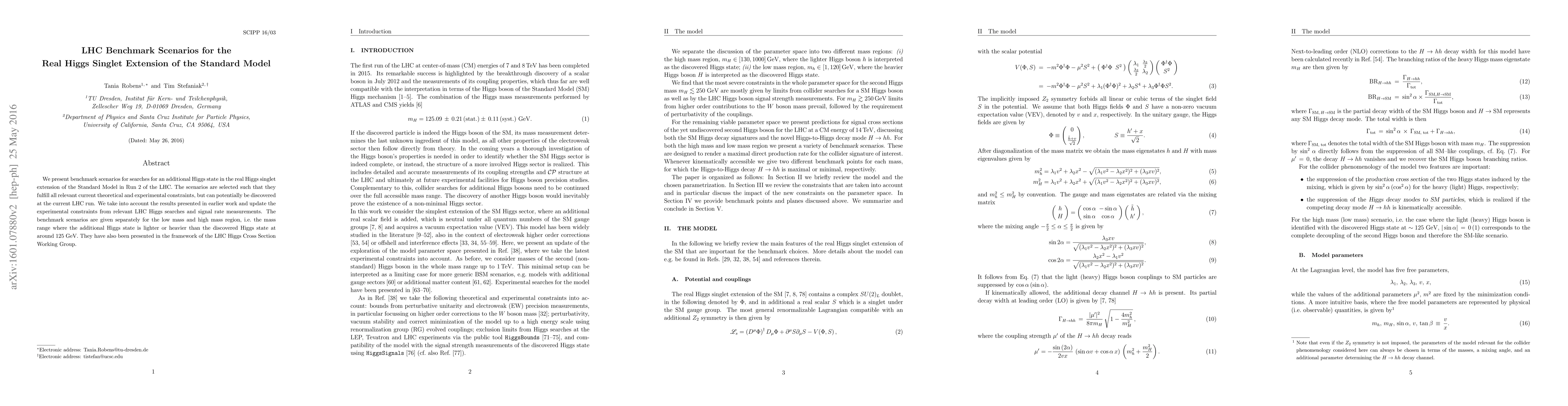 This paper presents benchmark scenarios for detecting an additional Higgs state in the real Higgs singlet extension of the Standard Model during LHC Run 2. The scenarios meet current theoretical and experimental constraints and are tailored for both low and high mass regions relative to the 125 GeV Higgs boson.