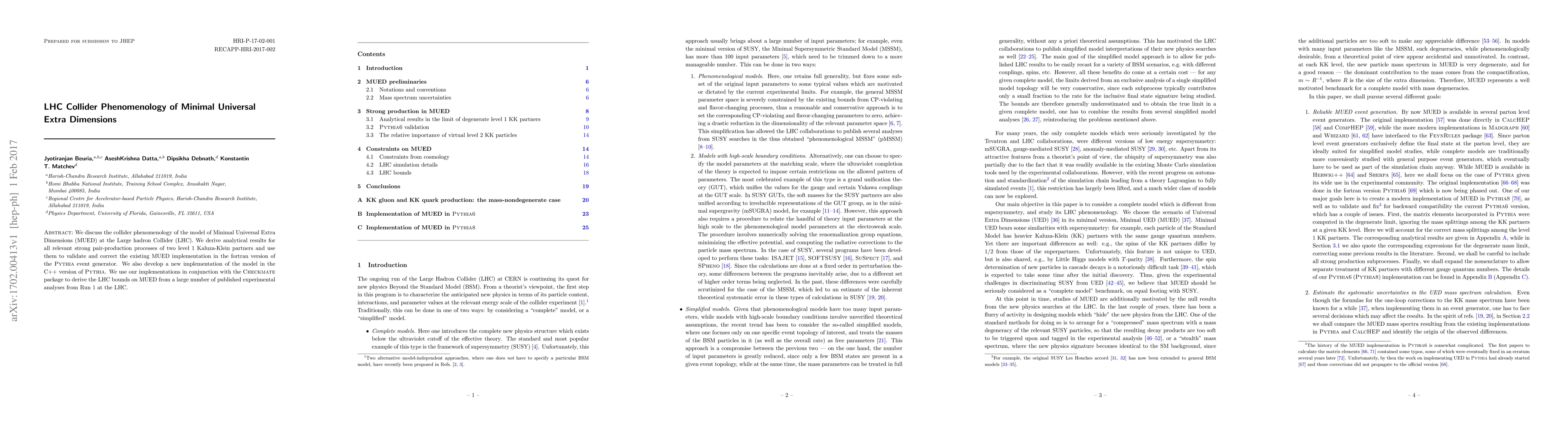 We discuss the collider phenomenology of the model of Minimal Universal Extra Dimensions (MUED) at the Large hadron Collider (LHC). We derive analytical results for all relevant strong pair-production processes of two level 1 Kaluza-Klein partners and use them to validate and correct the existing MUED implementation in the fortran version of the PYTHIA event generator. We also develop a new implementation of the model in the C++ version of PYTHIA. We use our implementations in conjunction with the CHECKMATE package to derive the LHC bounds on MUED from a large number of published experimental analyses from Run 1 at the LHC.