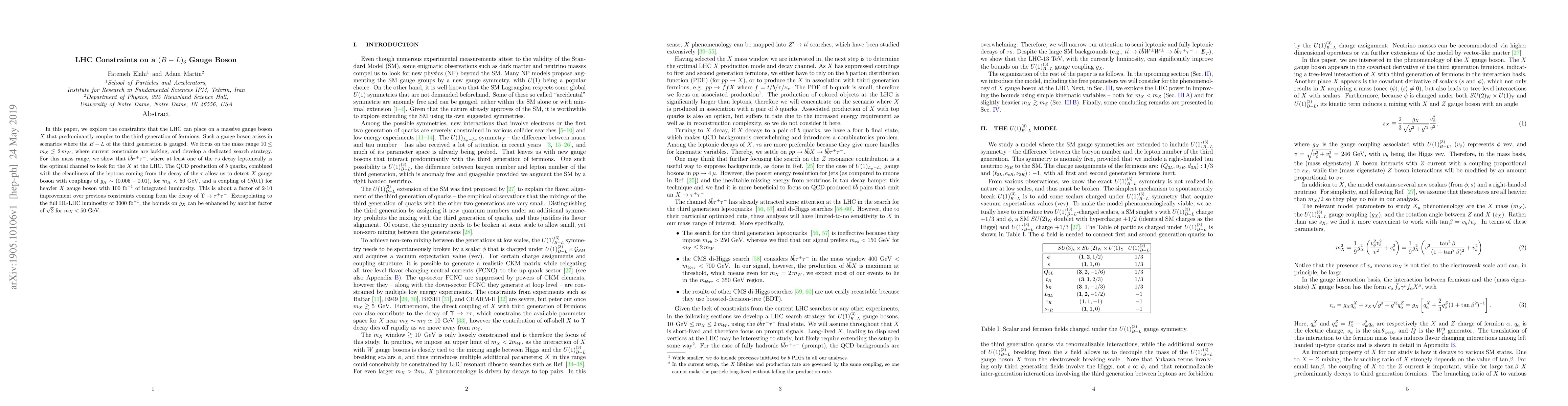 In this paper, we explore the constraints that the LHC can place on a massive gauge boson $X$ that predominantly couples to the third generation of fermions. Such a gauge boson arises in scenarios where the $B-L$ of the third generation is gauged. We focus on the mass range $10 \leq m_X \lesssim 2\,m_W$, where current constraints are lacking, and develop a dedicated search strategy. For this mass range, we show that $b \bar b \tau^+ \tau^-$, where at least one of the $\tau$s decay leptonically is the optimal channel to look for the $X$ at the LHC. The QCD production of $b$ quarks, combined with the cleanliness of the leptons coming from the decay of the $\tau$ allow us to detect $X$ gauge boson with couplings of $g_X \sim(0.005-0.01)$, for $m_X < 50 \ \text{GeV}$, and a coupling of $O(0.1)$ for heavier $X$ gauge boson with $100 \ \text{fb}^{-1}$ of integrated luminosity. This is about a factor of 2-10 improvement over previous constraints coming from the decay of $\Upsilon \to \tau^+ \tau^-$. Extrapolating to the full HL-LHC luminosity of $3000 \ \text{fb}^{-1}$, the bounds on $g_X$ can be enhanced by another factor of $\sqrt{2}$ for $m_X < 50 \ \text{GeV}$.