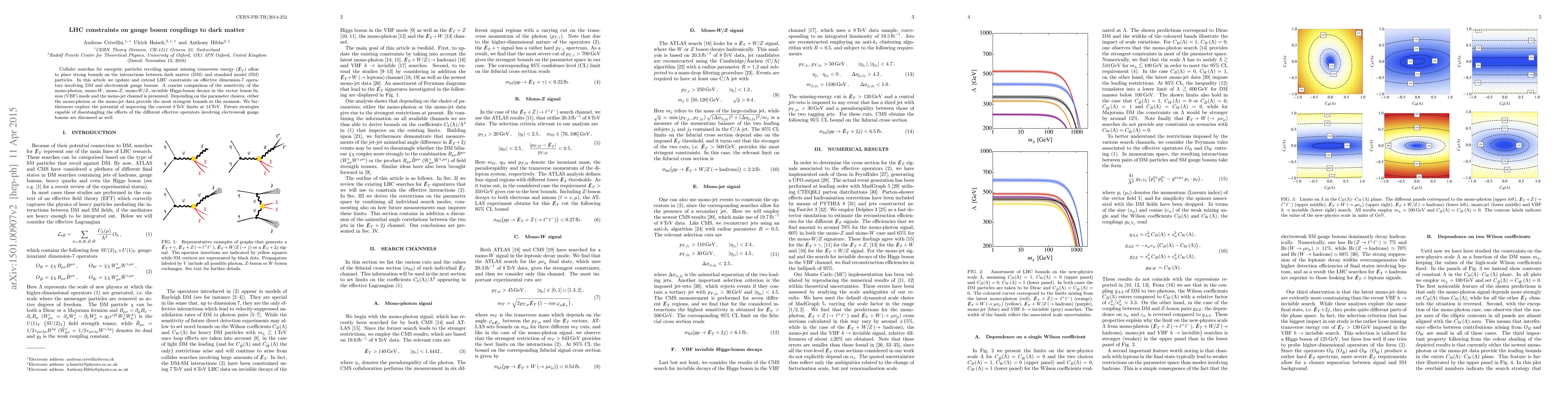 Collider searches for energetic particles recoiling against missing transverse energy allow to place strong bounds on the interactions between dark matter (DM) and standard model particles. In this article we update and extend LHC constraints on effective dimension-7 operators involving DM and electroweak gauge bosons. A concise comparison of the sensitivity of the mono-photon, mono-W, mono-Z, mono-W/Z, invisible Higgs-boson decays in the vector boson fusion mode and the mono-jet channel is presented. Depending on the parameter choices, either the mono-photon or the mono-jet data provide the most stringent bounds at the moment. We furthermore explore the potential of improving the current 8 TeV limits at 14 TeV. Future strategies capable of disentangling the effects of the different effective operators involving electroweak gauge bosons are discussed as well.