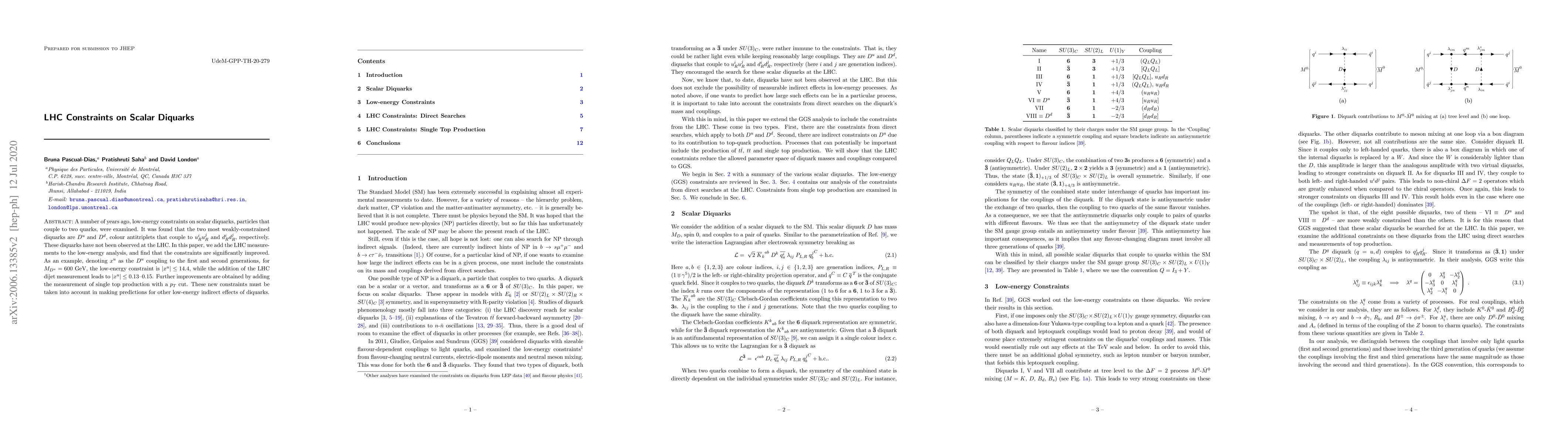 This paper investigates the constraints on scalar diquarks $D^u$ and $D^d$ from LHC measurements, significantly improving previous low-energy constraints. The LHC data reduce the coupling strength for $D^u$ at 600 GeV from $14.4$ to $0.13$--$0.15$, highlighting the importance of these new constraints for predicting low-energy diquark effects.