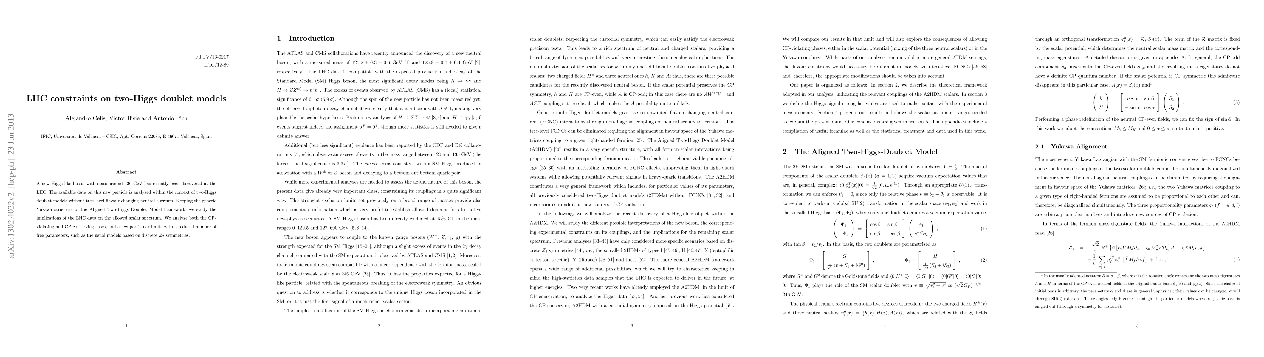 This paper analyzes the implications of LHC data on the scalar spectrum in two-Higgs doublet models, focusing on the Aligned Two-Higgs Doublet Model framework without tree-level flavour-changing neutral currents. It examines both CP-violating and CP-conserving scenarios, and specific limits based on discrete ${\cal Z}_2$ symmetries.