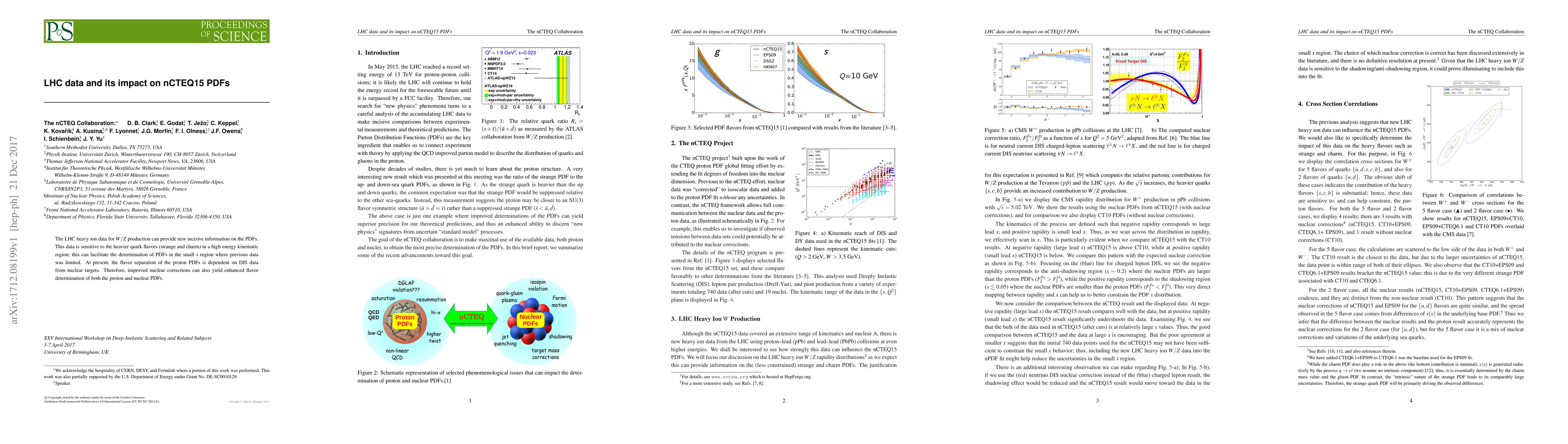 Summary: LHC heavy ion data for W/Z production offers new insights into Parton Distribution Functions (PDFs) by probing heavier quark flavors in high-energy regions, enhancing the determination of small x region PDFs. Improved nuclear corrections from DIS data further refine the flavor separation of proton and nuclear PDFs.