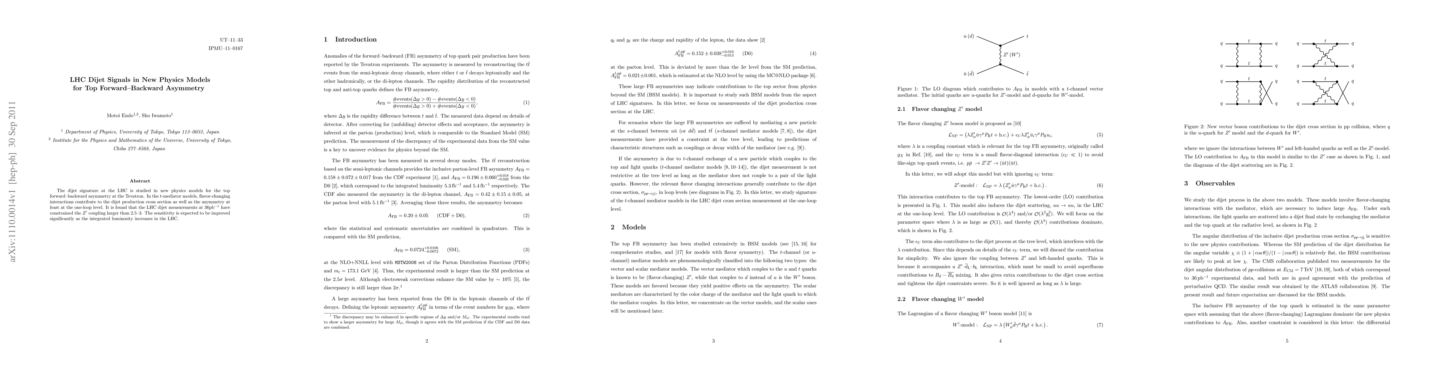 This paper investigates LHC dijet signals in new physics models explaining the top forward-backward asymmetry observed at the Tevatron. It finds that current LHC data constrains Z' coupling in t-mediator models to be greater than 2.5-3, with sensitivity expected to improve as luminosity increases.