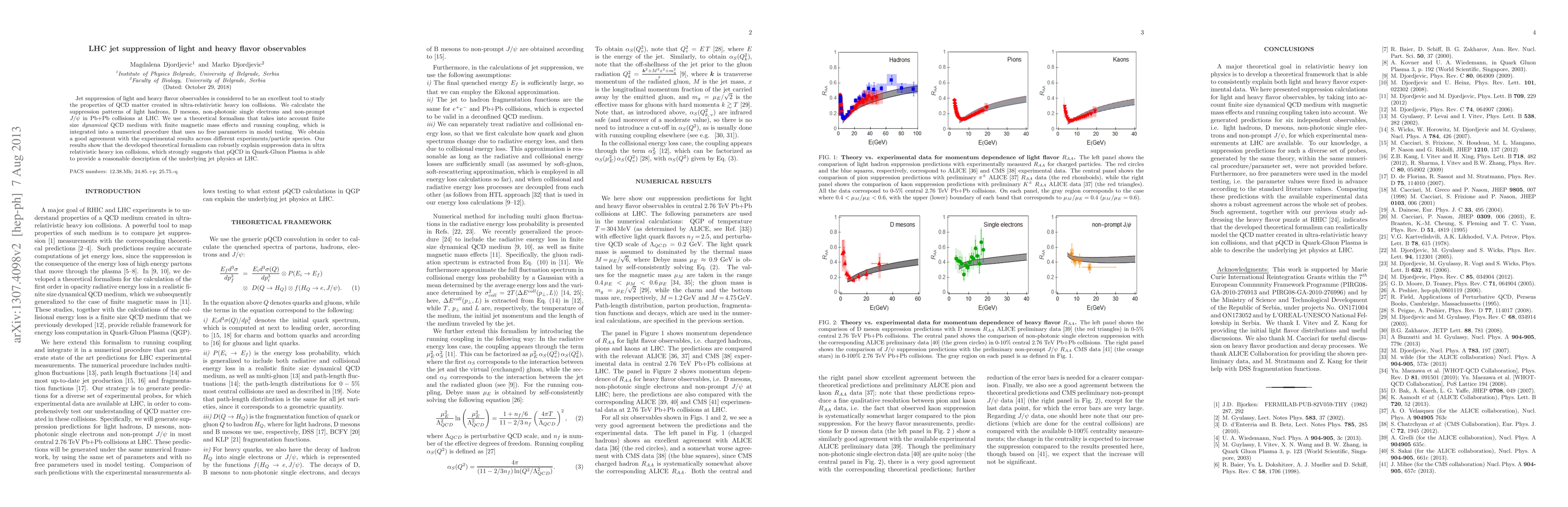 Jet suppression of light and heavy flavor observables is considered to be an excellent tool to study the properties of QCD matter created in ultra-relativistic heavy ion collisions. We calculate the suppression patterns of light hadrons, D mesons, non-photonic single electrons and non-prompt $J/\psi$ in Pb+Pb collisions at LHC. We use a theoretical formalism that takes into account finite size {\it dynamical} QCD medium with finite magnetic mass effects and running coupling, which is integrated into a numerical procedure that uses no free parameters in model testing. We obtain a good agreement with the experimental results across different experiments/particle species. Our results show that the developed theoretical formalism can robustly explain suppression data in ultra relativistic heavy ion collisions, which strongly suggests that pQCD in Quark-Gluon Plasma is able to provide a reasonable description of the underlying jet physics at LHC.